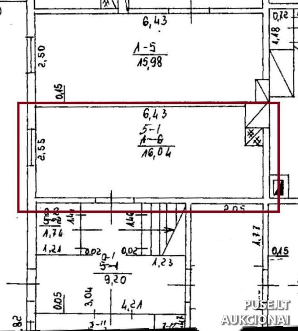 Nekilnojamasis turtas parduodamas esamos fizinės ir funkcinės būklės, pagal galiojančius kadastro duomenis (įėjimas į patalpą pažymėtas plane 1-5). Pardavėjas VĮ Turto bankas neįsipareigoja nustatyti aktualios kadastro būklės ir neatlieka daiktų iškeldinimo iš parduodamų patalpų.