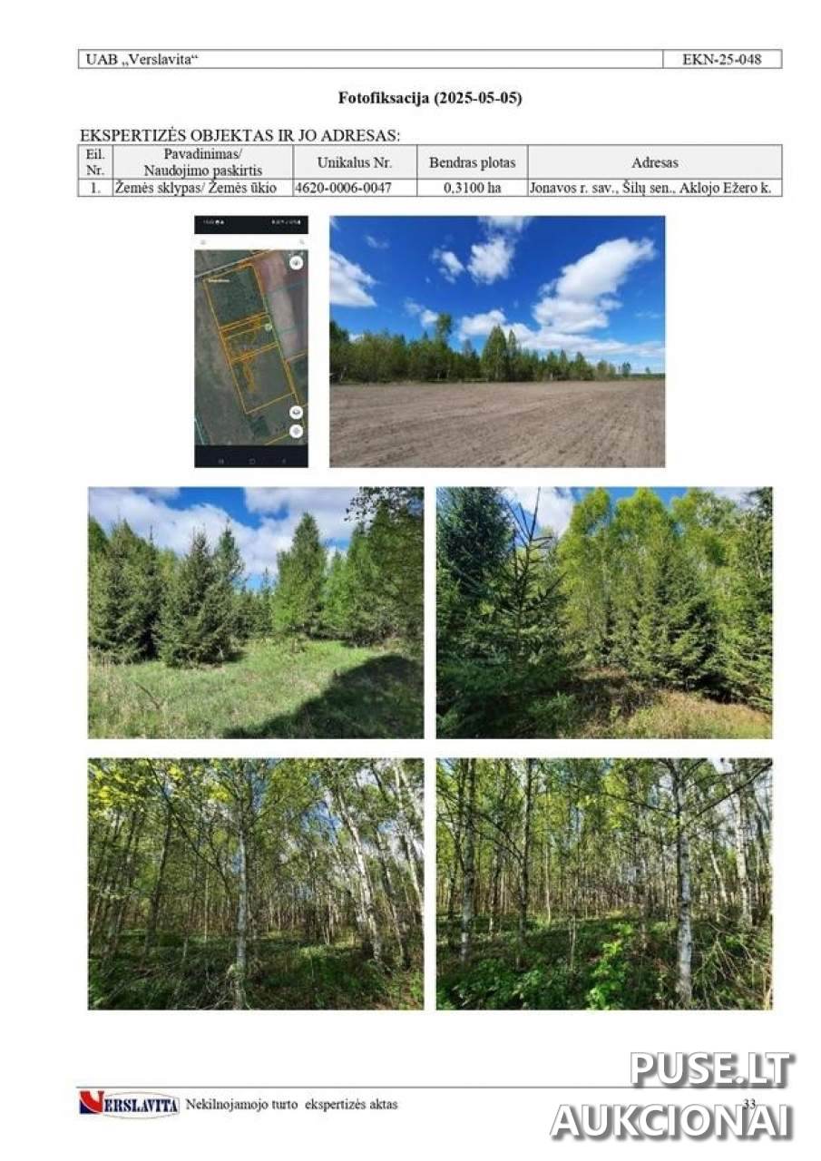Žemės sklypo pradinė kaina aukcione yra 1200 EUR.