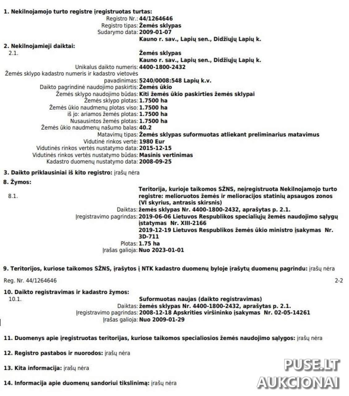 Kokia yra šio 1.75 ha žemės sklypo pradinė kaina aukcione?