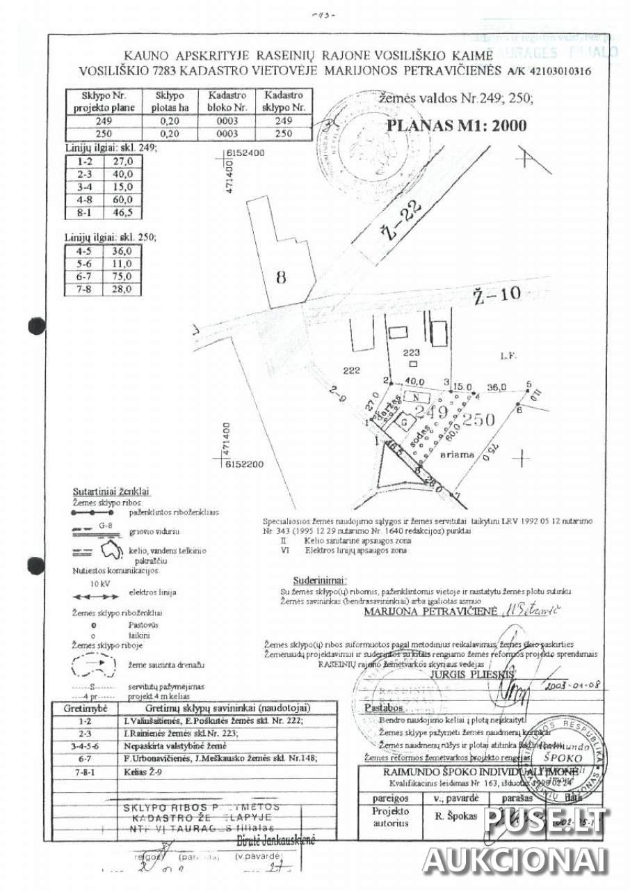 Žemės ūkio paskirties 0.20 ha sklypo dalis Raseinių r. Vosiliškio k. aukcionas nuo 326 EUR
