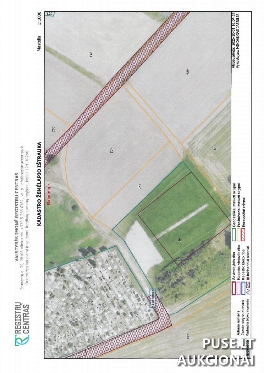 2/3 dalies žemės ūkio paskirties sklypas Raseinių r. sav., Vosiliškio k. pradinė kaina 256 EUR