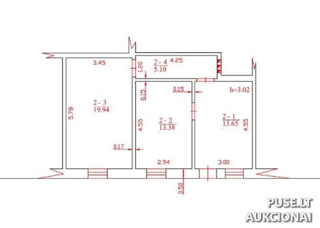 Mažas butas Kybartuose, Gedimino g. 8, pradinė kaina 677 EUR, 52 kv.m plotas