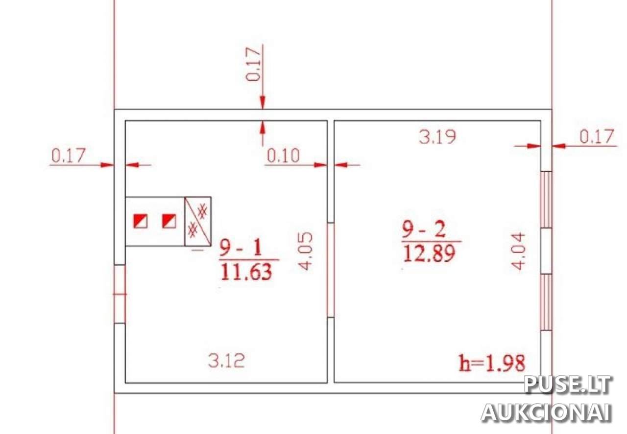 Parduodamas nedidelis 1/1 butas Vilkaviškio rajone, Kybartų mieste, V. Kudirkos gatvėje 4-9, kurio bendras plotas yra 24.52 kv. m, siūlomas su 662 EUR pradine kaina Turto banko aukcione. Šis nekilnojamasis turtas parduodamas esamos faktinės būklės, atsižvelgiant į galiojančius nekilnojamojo turto kadastro duomenis, o Valstybės įmonė Turto bankas neprisiima įsipareigojimų dėl aktualios būklės nustatymo ir esančių daiktų iškraustymo.