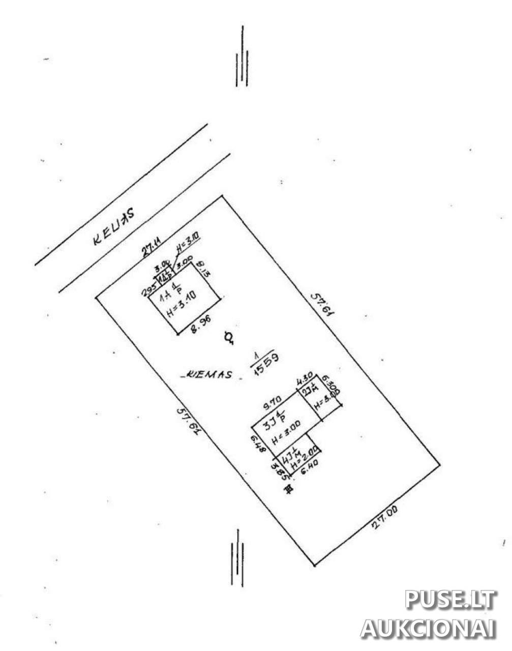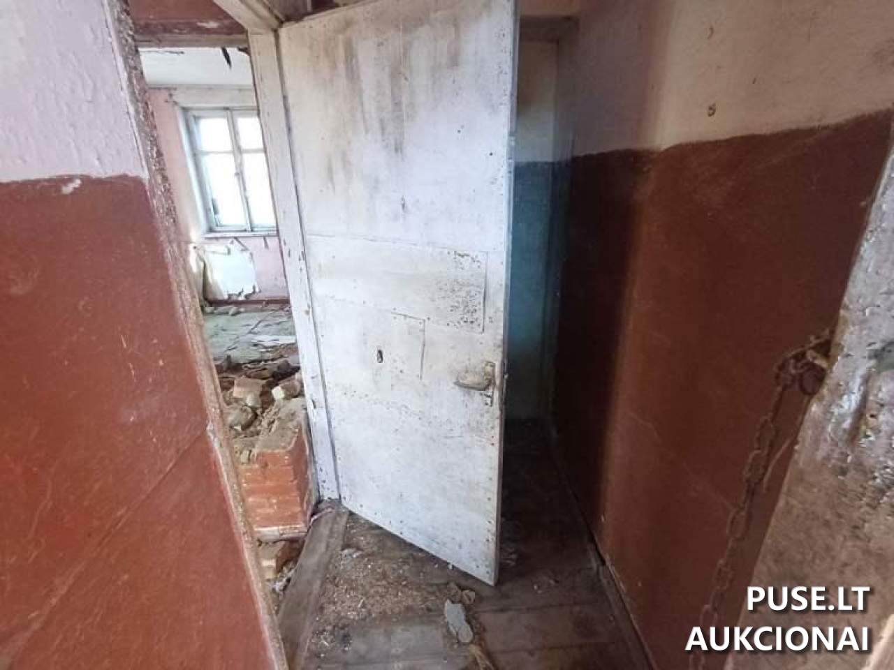 Parduodama 37/100 dalis, namas fiziškai pažeistas (nėra durų, išdaužyti langai), vienas statinys (lauko tualetas) neatitinka reikalavimų, teisės į žemės sklypą nėra perleidžiamos, komunikacijų nėra.