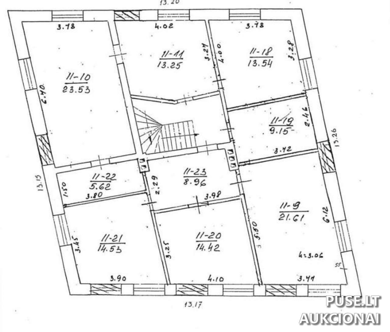 Parduodama 62/100 dalis administracinio pastato (bendras plotas 426.81 kv. m), unikalus Nr. 7793-3001-7013; taip pat 0,0338 ha dalis iš 0,1013 ha žemės sklypo, unikalus Nr. 4400-5058-8370, Tauragė, Stoties g. 12. Turtas parduodamas esamos fizinės ir funkcinės būklės pagal esamus nekilnojamojo turto kadastro duomenis. Pastate atlikti pakeitimai: panaikinta siena tarp patalpų I-4 ir I-5, panaikinti išėjimai, naujas įėjimas įrengtas I-4 patalpoje; I-7 patalpa padidinta I-8 sąskaita; II-22 patalpoje pakeista įėjimo angos lokacija (patenkama iš II-21). VĮ Turto bankas neturi duomenų, kada pastatas buvo rekonstruotas ir ar rekonstrukcija atlikta vadovaujantis tuo metu galiojusiais teisės aktais. VĮ Turto bankas neįsipareigoja nustatyti aktualios nekilnojamojo turto kadastro duomenų būklės, jų įregistruoti ar iškraustyti jame esančių daiktų. Potencialus aukciono dalyvis turi išnagrinėti visas su turto pirkimu susijusias teisines ir ekonomines rizikas bei rekomenduojama iki aukciono dienos atlikti vietos apžiūrą ir įvertinti įrengimo galimybes bei kaštus. Bendraturčiai nėra sudarę susitarimų dėl naudojimosi bendros dalinės nuosavybės turtu tvarkos. Žemės sklypo patikėtiniai nėra sudarę susitarimų dėl naudojimosi žemės sklypo dalimis tvarkos.