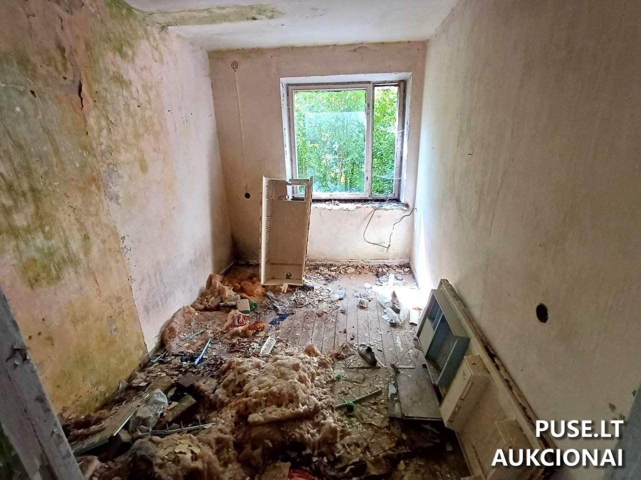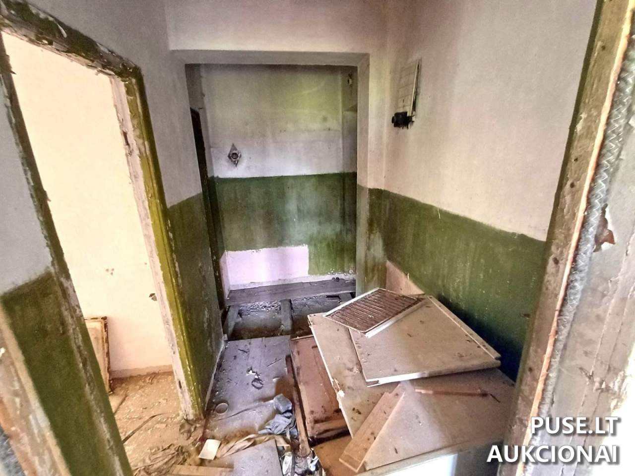 Butas bendro ploto 40.14 kv. m (unikalus Nr. 9196-6018-5026:0001), adresu Šiaulių r. sav., Šakynos seniūnija, Tulminų k., Šelvenų g. 16-1. Parduodama dalis: 1/1. Taip pat registruoti kiti su objektu susiję sklypo statiniai ir dalys: 1/8 dalis ūkinio pastato užstatyto ploto 209.00 kv. m (unikalus Nr. 9196-6018-5048) ir 1/16 dalis kiemo statinių (šulinio, 2 lauko tualetai) (unikalus Nr. 9196-6018-5059). Nekilnojamasis turtas parduodamas esamos fizinės ir funkcinės būklės bei pagal esamus nekilnojamojo turto kadastro duomenis. VĮ Turto bankas neįsipareigoja nustatyti aktualios kadastro duomenų būklės, neperleidžia teisių į žemės sklypą ar jo dalį, taip pat neįsipareigoja iškraustyti jame esančių daiktų. Parduodamas turtas yra valstybinėje žemėje, kurioje žemės sklypas nesuformuotas. Įspėjama, kad inžinerinis statinys (lauko tualetas) neatitinka jam taikomų teisės aktų reikalavimų; potencialiems pirkėjams rekomenduojama savarankiškai įvertinti teisines ir ekonomines rizikas, atlikti vietos apžiūrą ir įvertinti galimų įrengimo ar nugriovimo kaštus. VĮ Turto bankas neatsako už nuostolius dėl statinio trūkumų ar neatitikimų teisės aktams.