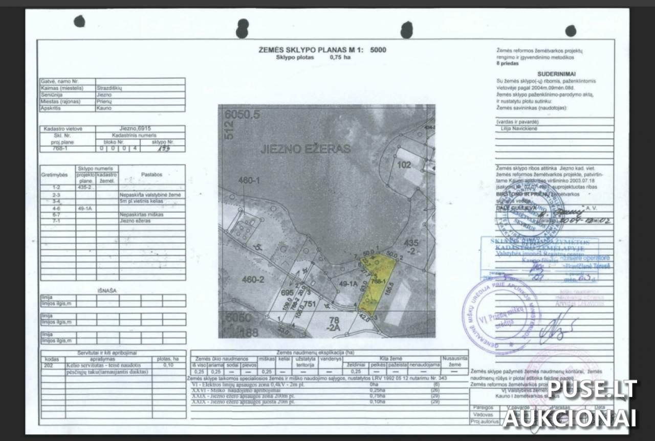 Parduodamas žemės ūkio paskirties sklypas Prienų r. sav., Jiezno sen., Vincentavos k. Unikalus daikto numeris: 4400-0486-9170. Kadastro nr.: 6915/0004:193 (Jiezno k.v.). Sklypo bendras plotas: 0.7500 ha. Iš viso žemės ūkio naudmenų plotas: 0.2500 ha (ariamos žemės 0.2500 ha). Miško žemės plotas: 0.2500 ha; miško plotas, įregistruotas Miškų valstybės kadastre: 0.3916 ha (įregistravimo data: 2025-08-14). Kitos žemės plotas: 0.2500 ha. Parduodama dalis: 1/1. Pradinė aukciono kaina: 5 600 EUR. Statusas: vykstančios antstolių varžytynės (aukcionas prasideda 2025-10-06 11:47:45, baigiasi 2025-11-05 11:47:59). Apribojimas: disponavimo teisės apribojimas. Pastaba dėl įsigijimo: jei varžytynėse parduodama žemės ūkio paskirties žemė, iki turto pardavimo iš varžytynių akto surašymo dienos laimėjęs asmuo antstoliui turi pateikti Lietuvos Respublikos žemės ūkio paskirties žemės įsigijimo įstatyme nurodytus duomenis ir dokumentus, patvirtinančius, kad asmuo atitinka tokiam turtui keliamus reikalavimus.