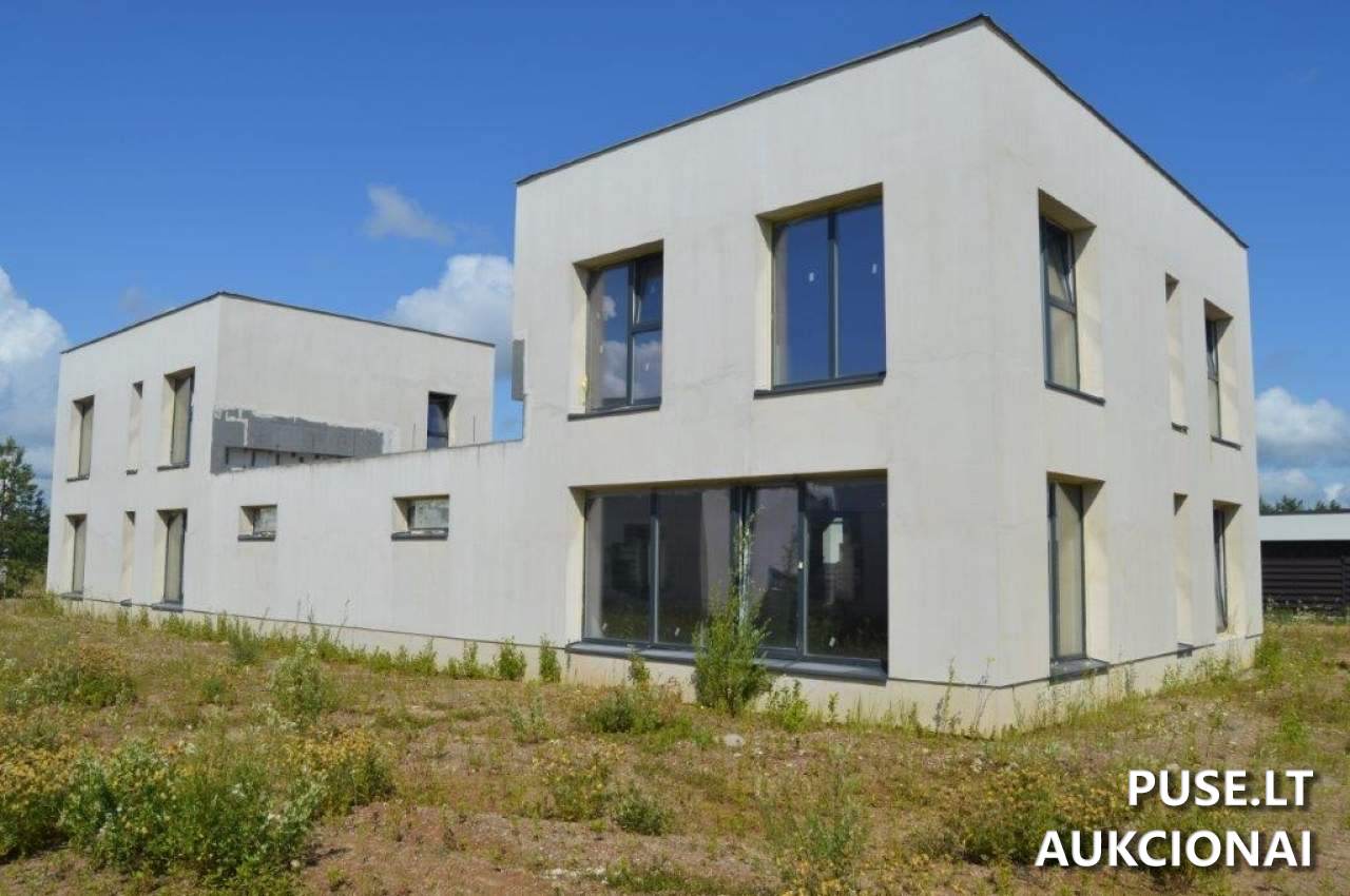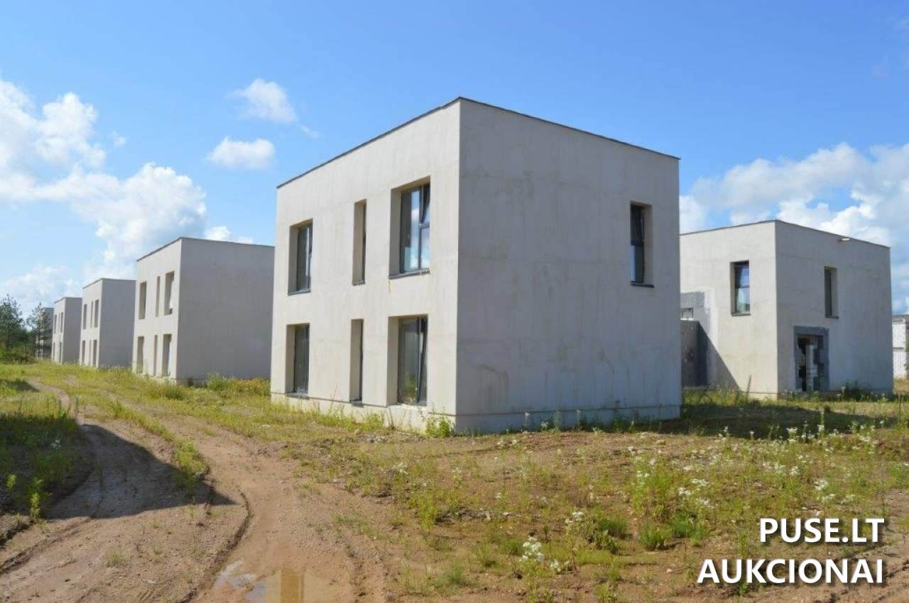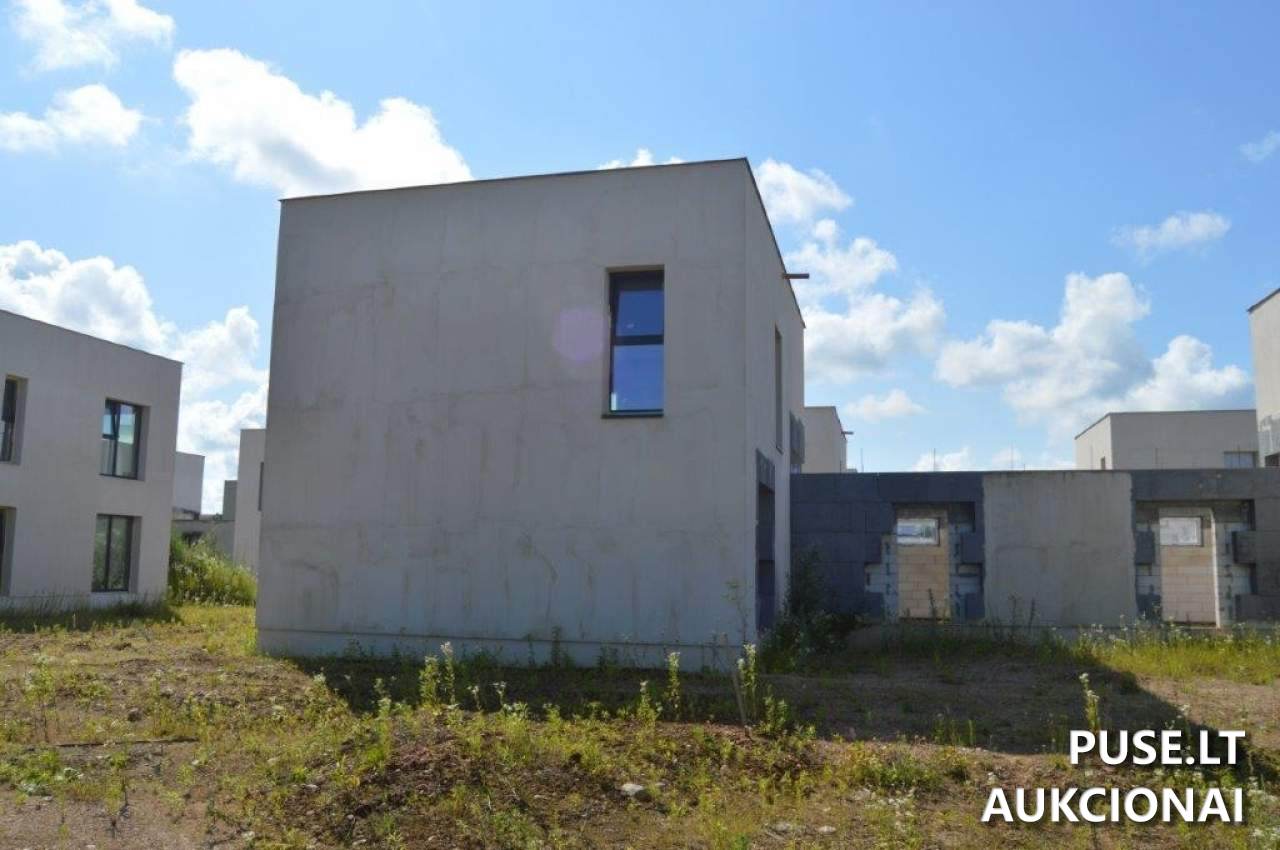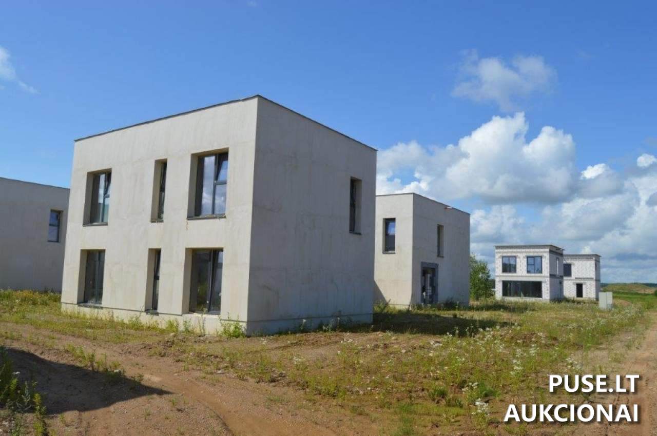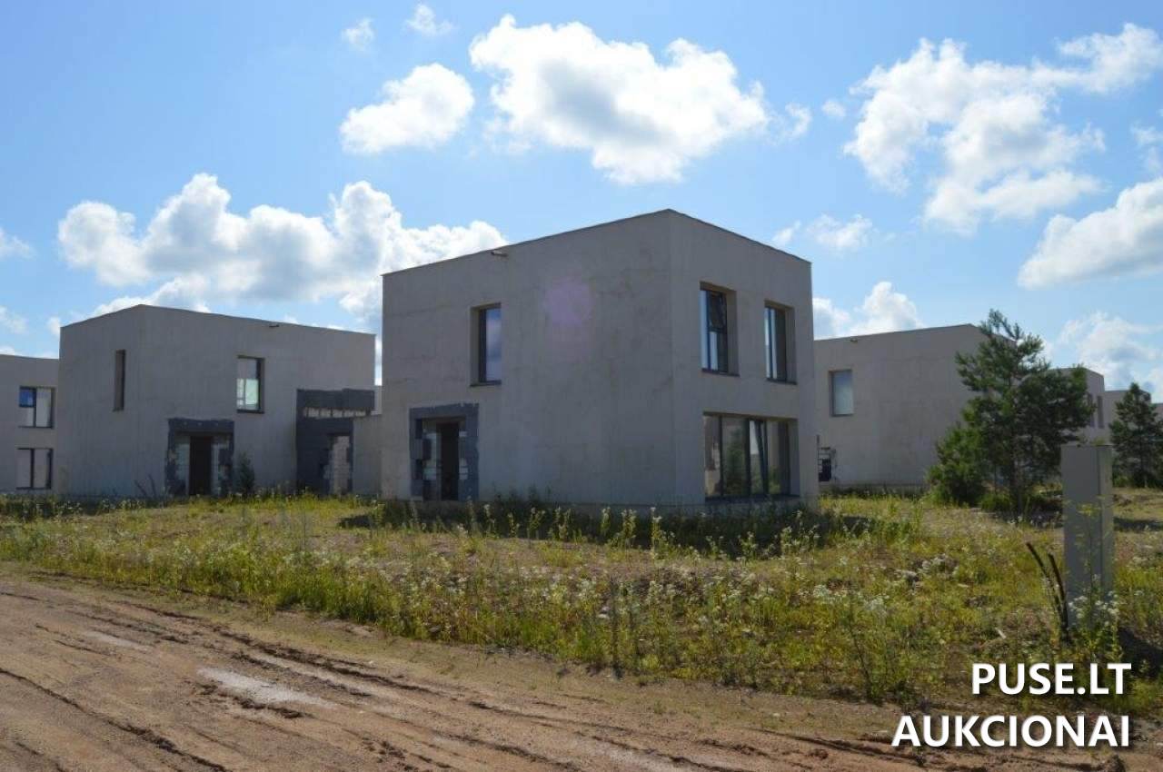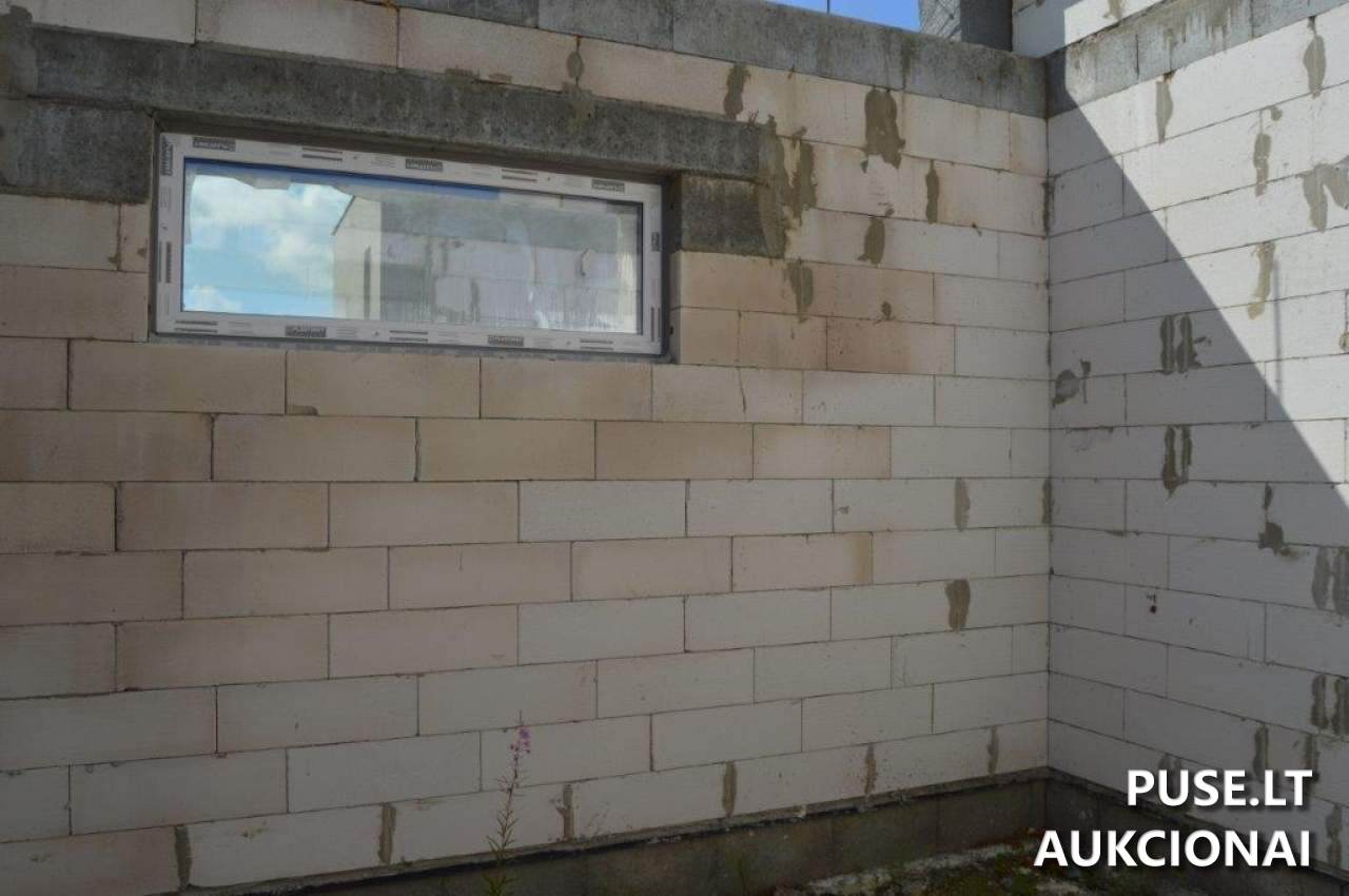Dvibutis gyvenamasis namas, adresu Vilnius, Grinapolio g. 62 (unikalus nr. 4400-6049-9018). Dviejų aukštų pastatas, vertinamas ir bendras plotas 285,28 m², užstatytas plotas 181 m², tūris 1054 m³. Statybos pradžia ir pabaiga 2023 m.; registruotas baigtumas 54 %, faktinis apie 60 %. Konstrukcijos: 200 mm akyto betono blokeliai, gelžbetoninės perdangos, gelžbetonio pamatai, plokščiasis bituminis stogas. Langai sumontuoti (plastiški rėmai su stiklo paketais), durų nėra. Vidaus apdaila ir inžineriniai tinklai nebaigti: elektros įvadas yra; dujų, šildymo, vandentiekio ir nuotekų tinklai neįrengti. Žemės sklypas suformuotas po pastatu, turtas vertinamas 57.31 verčių zonoje (mažesnės kainos, periferinė miesto dalis). Pardavimo dalis: 1/1. Apribojimai: hipotekos nutartis, turto areštas. Aukciono pradinė kaina 1 927 800 EUR. Dėl registracijos, apžiūros ir papildomos informacijos kreiptis į antstolių kontorą (žr. kontaktus antstolio paskelbtoje informacijoje).