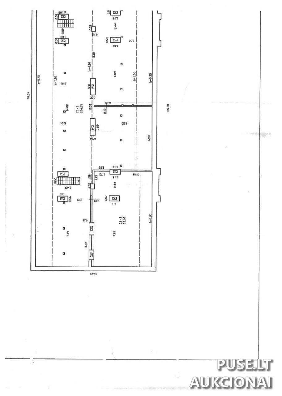 Parduodama 1664/10000 dalis, atitinkanti 53,09 kv. m iš 319,03 kv. m bendro ploto.