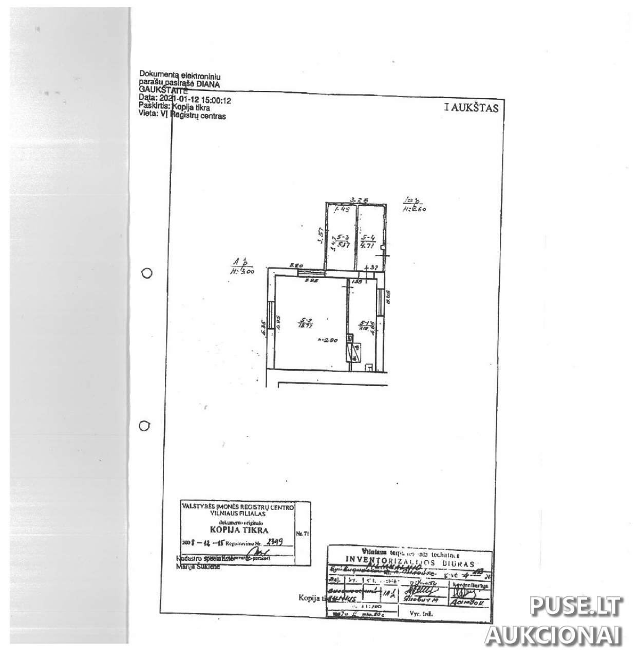 Adresas: Piliakalnio g. 12-5, Vilnius. Buto plotas 35,83 kv. m, 1 aukštas, unikalus Nr. 4194-0318-3014:0005.