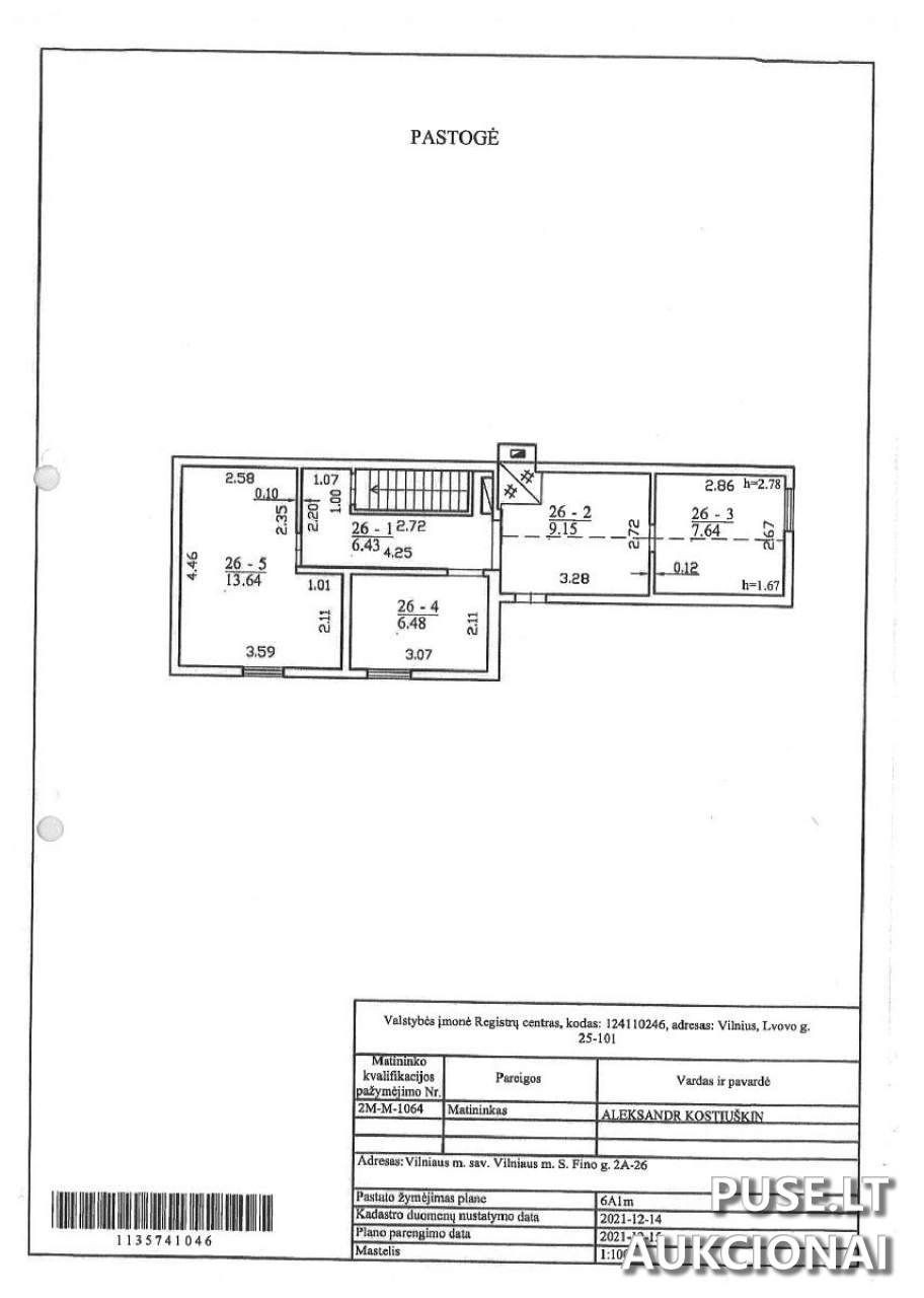 Butas (unikalus Nr. 1094-0146-9058:0006), 43,34 kv. m, vieno aukšto medinio pastato pastogėje. Adresas: S. Fino g. 2A-26, Vilnius. Turtas yra vizualinės apsaugos zonoje, priklausančioje Vilniaus senamiesčiui (Kultūros vertybių registro kodas 16073); turto naudojimas ir tvarkymas bei bet kokie statybos, remonto ar rekonstrukcijos darbai yra reglamentuojami nekilnojamojo kultūros paveldo apsaugos teisės aktais. Patalpos parduodamos esamos būklės. Skolų už elektros energiją nėra; Savivaldybė neįsipareigoja užtikrinti nenutrūkstamo elektros tiekimo ar vidaus tinklų techninio tvarkingumo. Galimi laikini elektros tiekimo apribojimai; su vidaus elektros tinklų remontu ir elektros tiekimo atnaujinimu susijusius klausimus pirkėjas sprendžia savo lėšomis ir rizika. Pradinė pardavimo kaina 29 816 EUR. Garantinis mokestis 2 981 EUR, registracijos mokestis 145 EUR. Aukciono registracija vyksta 2025-11-17 00:00:00–2025-11-19 23:59:59. Aukcionas vyksta 2025-11-24 09:00:00–2025-11-25 13:59:59. Nekilnojamojo turto pirkimo-pardavimo sutartis su aukciono laimėtoju turi būti sudaryta per 30 dienų nuo pardavimo, o visa kaina sumokėta ne vėliau kaip per 10 dienų nuo sutarties pasirašymo. Registracijos ir garantinio įnašo mokėjimo informacija: mokėti į Vilniaus miesto savivaldybės administracijos sąskaitą (kodas 188710061).