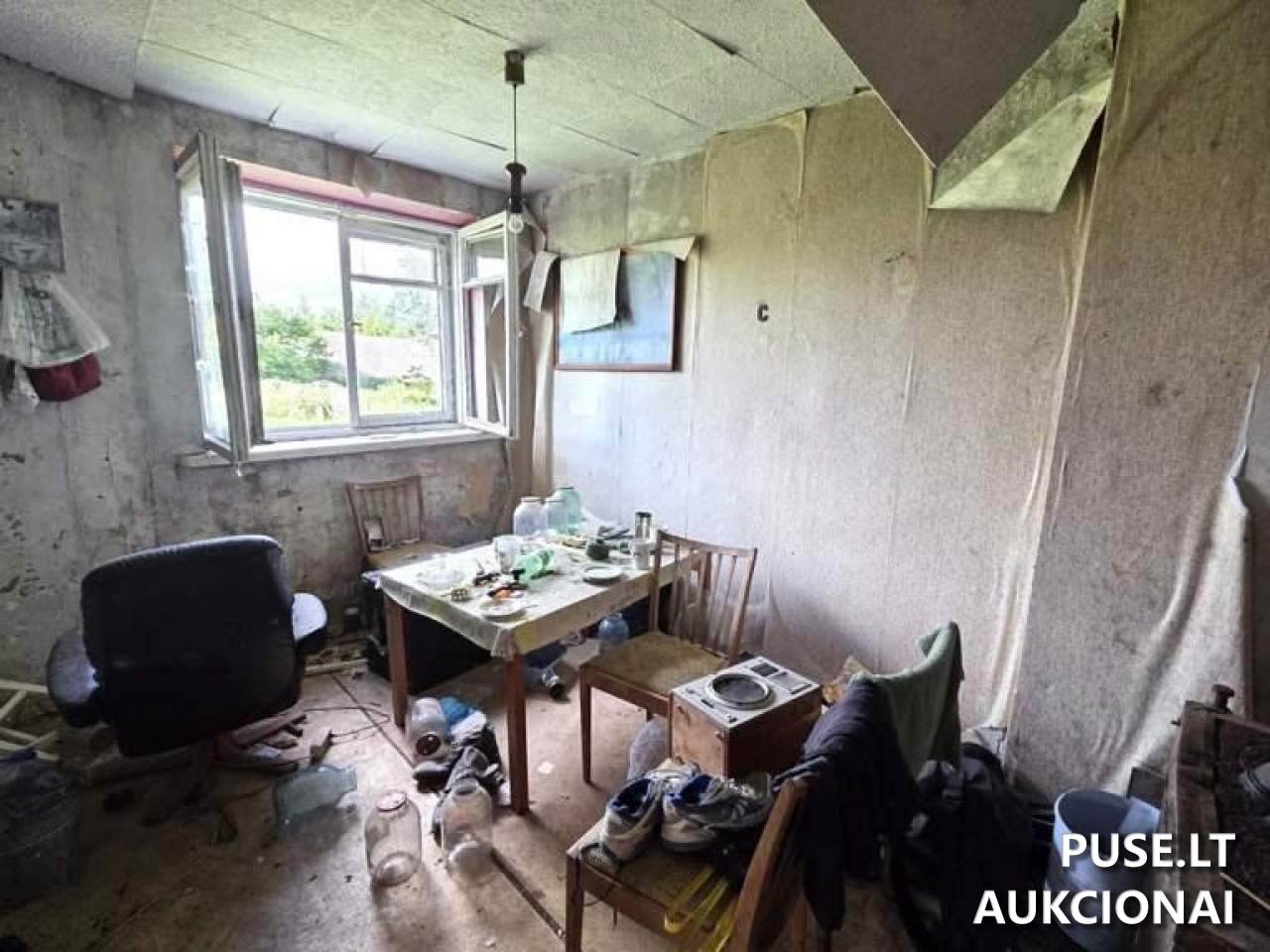 Parduodamas butas, bendras plotas 36.64 kv. m, unikalus Nr. 8196-8012-7018:0001, Ukmergės r. sav., Šešuoliai, Ežero g. 1-1. Taip pat parduodami ūkiniai pastatai: tvartas užstatyto ploto 19.00 kv. m (unikalus Nr. 4400-1778-2575) ir malkinė užstatyto ploto 7.00 kv. m (unikalus Nr. 400-1778-2631), visi objektai registruoti Ukmergės r. sav., Šešuoliai. Pardavimo dalis: 1/1.