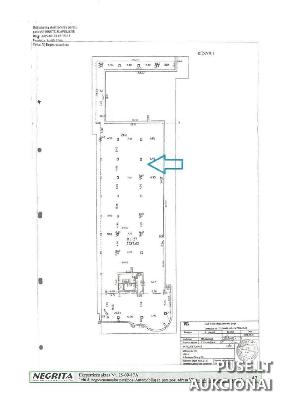 Parduodama 1/56 dalis negyvenamosios paskirties automobilių stovėjimo patalpos, unikalus Nr. 4400-1465-2130:9535, esanti A. Juozapavičiaus g. 9A, Vilnius. Dalies apytikslis plotas - ~23 m² (1/56 iš 1287.62 m²).