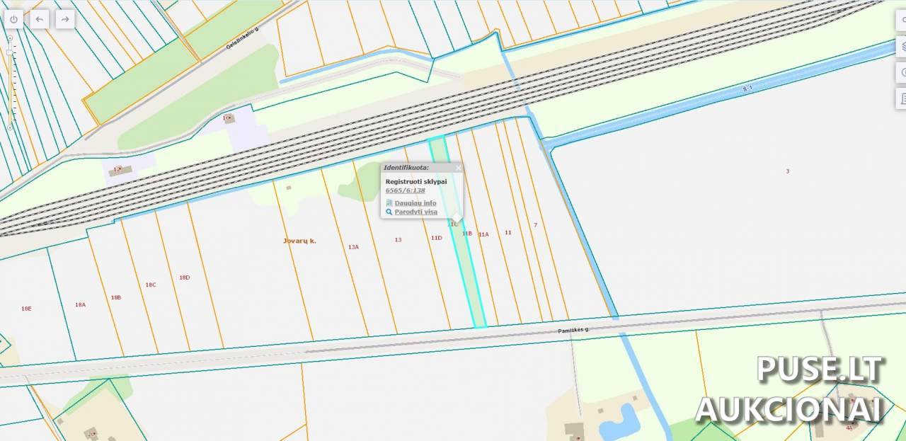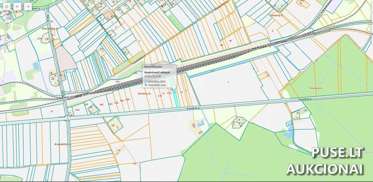 Žemės sklypas Pakruojo r. sav., Jovarų k., Pamiškės g. 11C. Paskirtis: pramonės ir sandėliavimo objektų teritorijos. Sklypo plotas 0,3400 ha, stačiakampio formos, privažiavimas asfaltu, reljefas lygus. Šiuo metu naudojamas ūkininkavimo veiklai. Sklypo teritorija eina ESO elektros tinklai: 10 kV oro linija, 0,4 kV oro linija. Nekilnojamo turto registre žemės sklype registruotų statinių nėra; pagal faktą statinių nėra. Teritorijoje taikomos apsaugos zonos: melioruotos žemės ir melioracijos statinių apsaugos zonos (VI skyrius), geležinkelio kelių ir jų įrenginių apsaugos zonos (III skyrius), kelių apsaugos zonos (III skyrius). Yra galimybė įsigyti šalia esančius sklypus. Parduodama dalis: 1/1. Apribojimas: turto areštas. Pradinė kaina: 9 600 EUR. Aukcionas vyksta nuo 2025-10-15 13:32:58 iki 2025-11-14 13:32:59.
