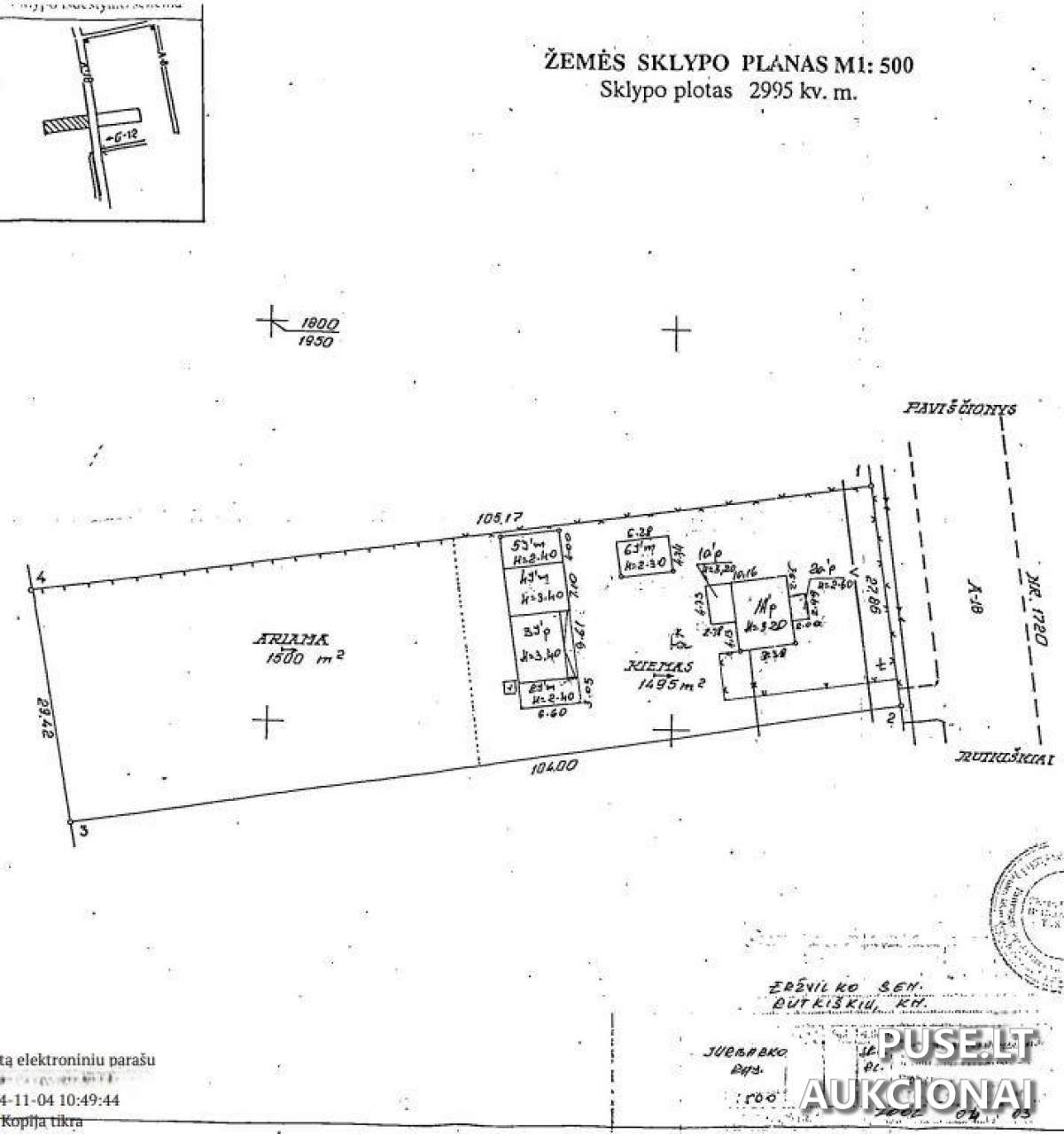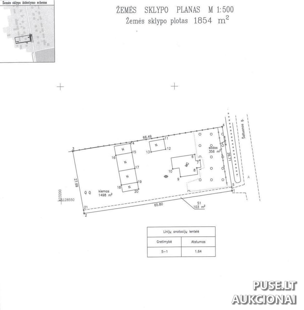 Adresas: Jurbarko r. sav., Rutkiškių k., Šaltuonos g. 32. Žemės sklypas 0,1854 ha, unikalus numeris 9464-0004-0141.