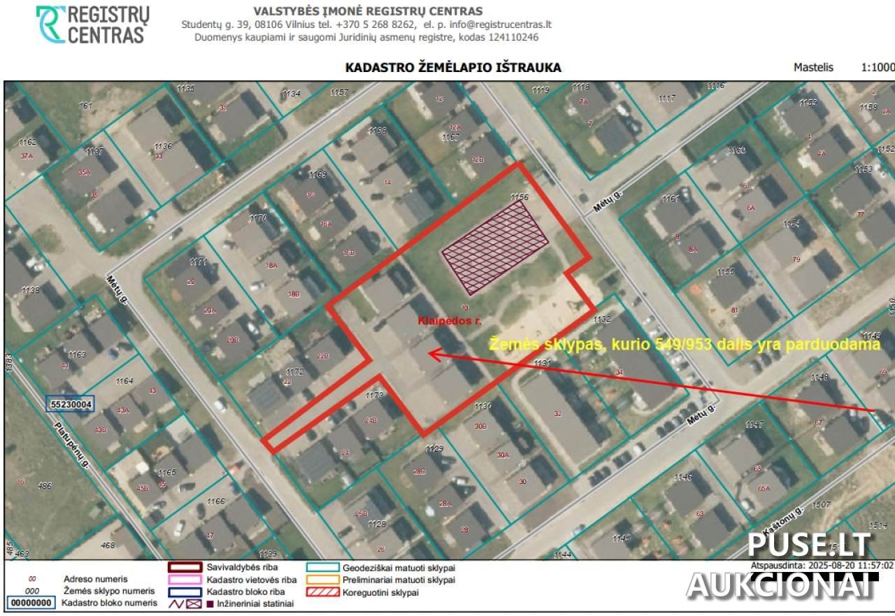 Parduodama 549/953 dalis žemės sklypo, Mėtų g. 10, Klemiškės II k., Klaipėdos r. sav. Žemės sklypo naudojimo būdas: vienbučių ir dvibučių gyvenamųjų pastatų teritorijos. Pradinė aukciono kaina: 40 535 EUR. Kadastrinis nr.: 5523/0004:1156. Unikalus nr.: 4400-5194-9290. Objektas yra PVM objektas. Pardavimas vyksta kaip nemokumo administratorių varžytynės. Aukciono laikotarpis: nuo 2025-10-16 12:29:07 iki 2025-11-17 12:29:59.