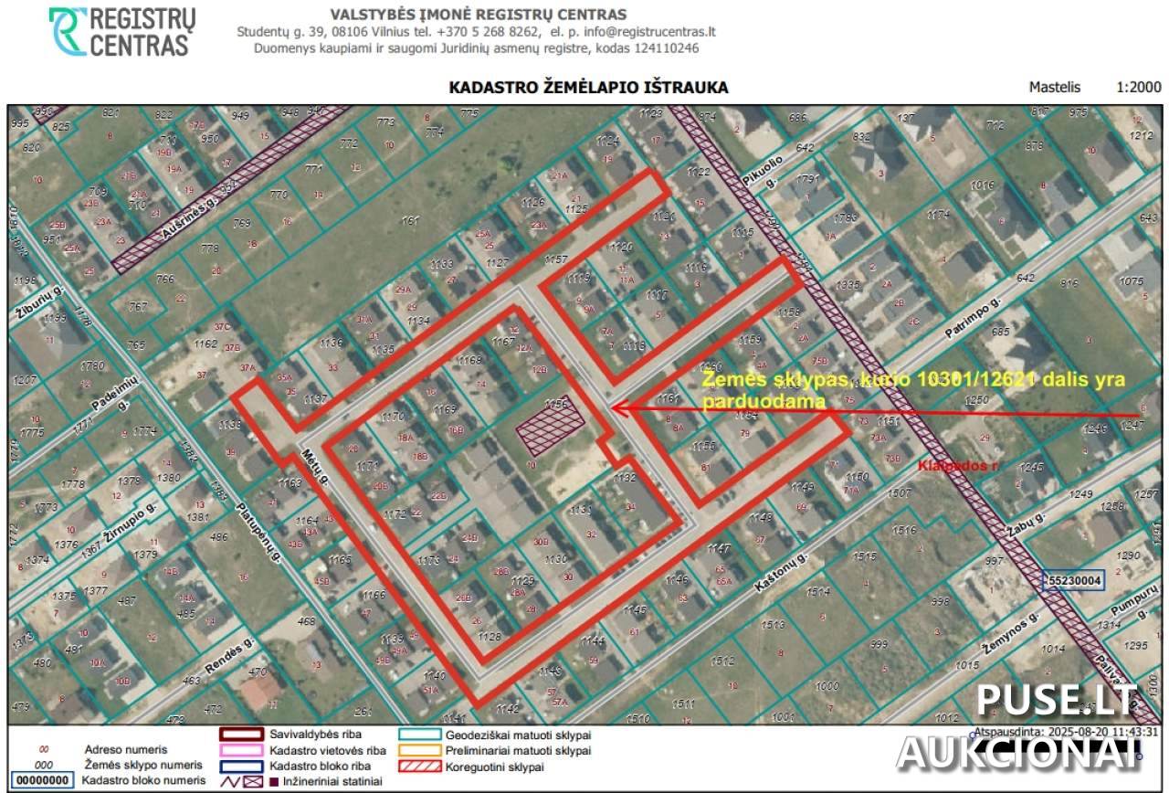 Parduodama 10301/12621 dalis žemės sklypo Klaipėdos r. sav., Sendvario sen., Klemiškės II k. Žemės sklypo naudojimo būdas: susisiekimo ir inžinerinių tinklų koridorių teritorijos. Nustatyta naudojimosi nekilnojamuoju daiktu tvarka. Kadastrinis Nr.: 5523/0004:1157. Unikalus Nr.: 4400-5162-5602. PVM objektas: Taip. Pradinė pardavimo kaina: 62 315 EUR. Aukciono statusas: vykstančios, nemokumo administratorių varžytynės. Parduodama dalis atitinka konkrečias naudojimo sąlygas, kurios nurodytos aukciono sąlygose.
