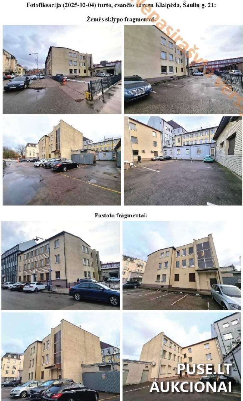 Administracinis pastatas su medicinos paskirties patalpomis, bendras plotas 882.87 kv. m, adresas Šaulių g. 21, Klaipėda. Parduodama 1/1 dalis. Unikalus numeris 2192-0008-3010. Pradinė kaina 1 028 000 EUR. Aukcionas vyksta nuo 2025-10-17 09:00 iki 2025-11-17 09:00:59. Statusas: vykstančios, nemokumo administratorių varžytynės. PVM objektas: Ne. Turto teisinis apribojimas: įkeistas. Savininkas: UAB "Naftos grupė", kodas 300058953. Apžiūra vykdoma iš anksto sutartu laiku.