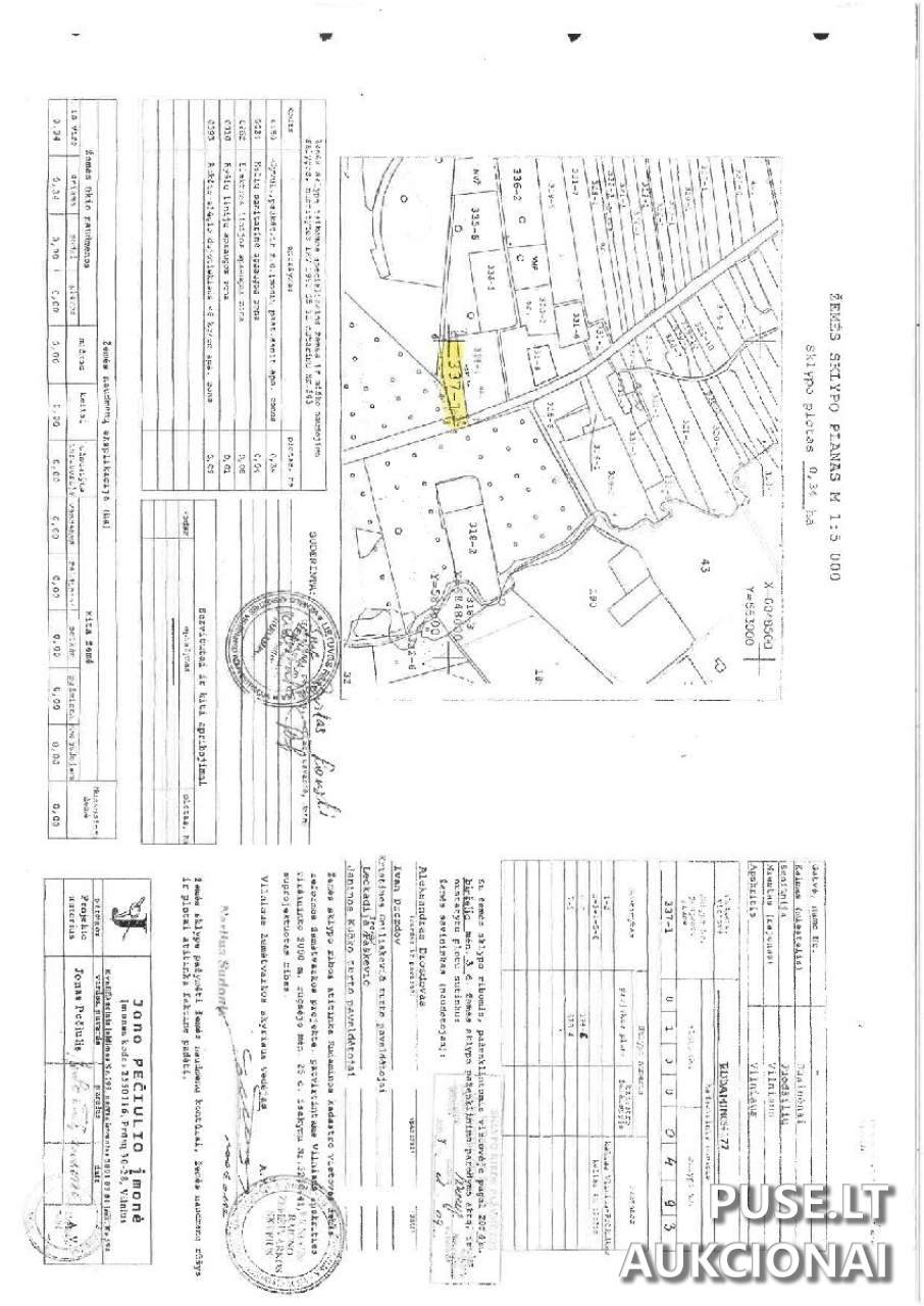 Dokumentuose nurodytas sklypo plotas 0,3400 ha (pateikta ir 0,3000 ha), pagrindinė naudojimo paskirtis – žemės ūkio, naudmenų plotas 0,3400 ha, našumo balas 45,0.