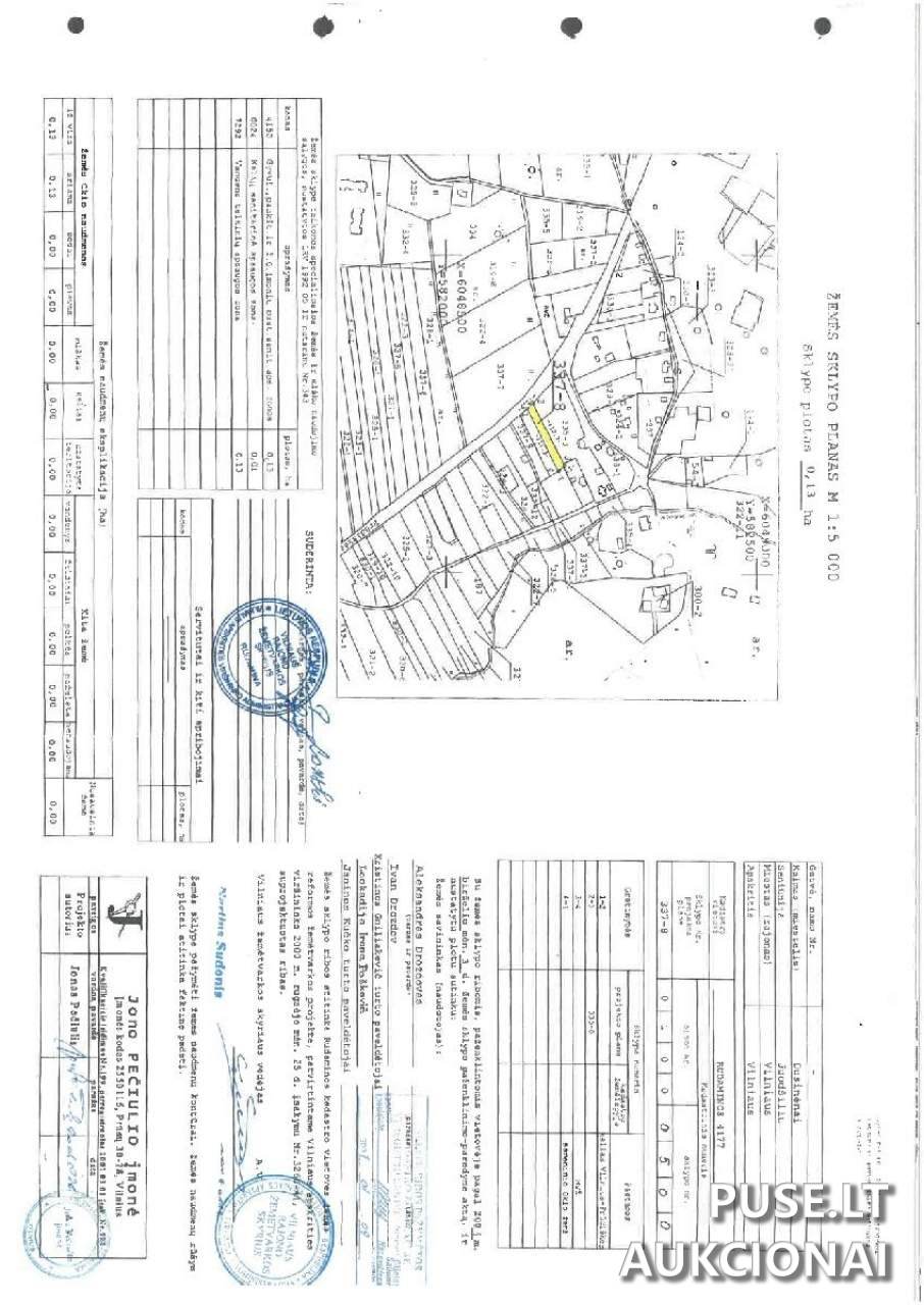 Žemės sklypas Dusinėnuose, Vilniaus r. – 5/91 dalis, 0,13 ha, pradinė kaina 119 EUR