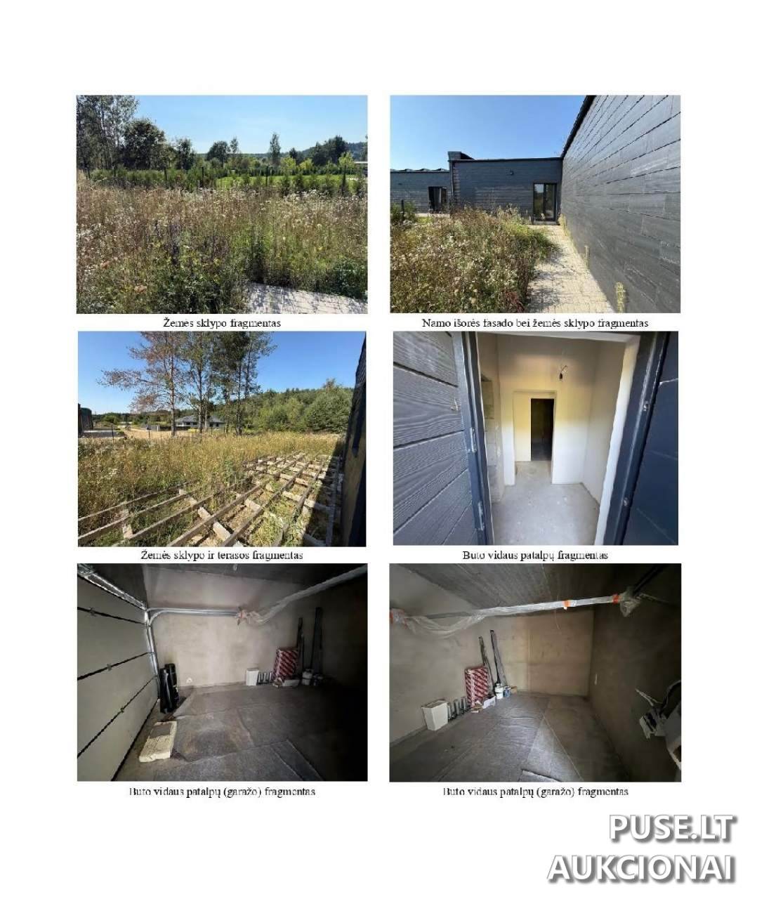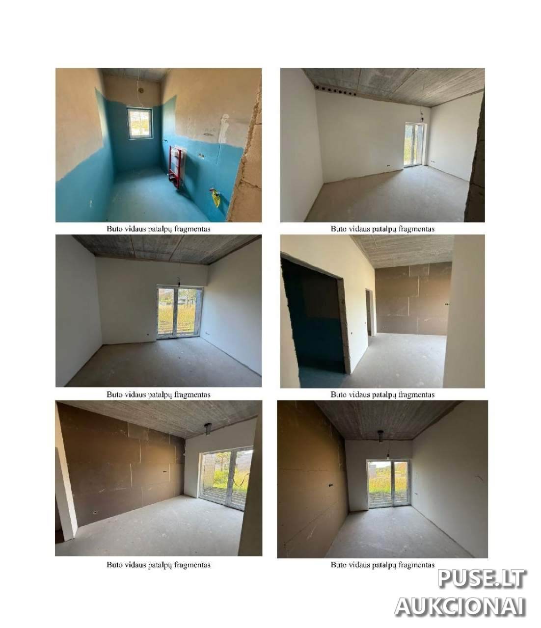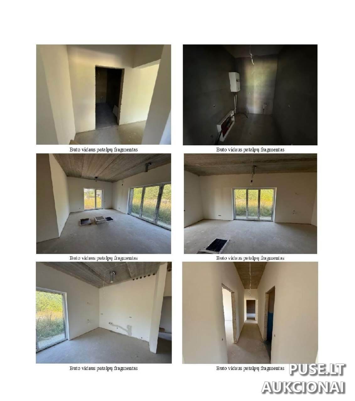 Parduodamas 2022 m. statybos butas, bendras plotas apie 134.97 m² (apvalinta 135 m²), 1 aukšte, keturi kambariai. Pastato energinio naudingumo klasė A++. Registruotas objekto baigtumas 85 %. Langai plastikiniai su stiklo paketu; grindys betonas (katilinėje plytelės); sienos tinkuotos ir gipso kartono konstrukcijos, glaistytos (katilinėje plytelės); lubos be apdailos, perdengimo plokštės. Vidaus durų nėra, įėjimo durys metalinės. Šildymas faktiškai išvedžiotas – yra paruošta grindinio šildymo sistema, bet šildymas oficialiai nenurodytas kaip įrengtas. Vandentiekis ir nuotekų šalinimas neišbaigti, vamzdynai išvedžioti iki numatytų vietų. Dujos nėra. Viryklė nėra. Elektra išvedžiota iki numatytų taškų. Butas įrengiamas, teritorija dalinai sutvarkyta: dalis sklypo ir nuogrinda aplink namą išklota trinkelėmis, kita dalis apaugusi daugiamete žole, sumontuoti tvoros stulpai. Turtui atliktas vertinimas. Parduodama dalis: 1/1. Unikalus kadastrinis numeris: 4400-5925-9364:4012. Pardavimo forma: antstolių varžytynės; pradinė kaina 188 000 EUR. Objektui taikomi ribojimai: hipotekos nutartis, turto areštas.