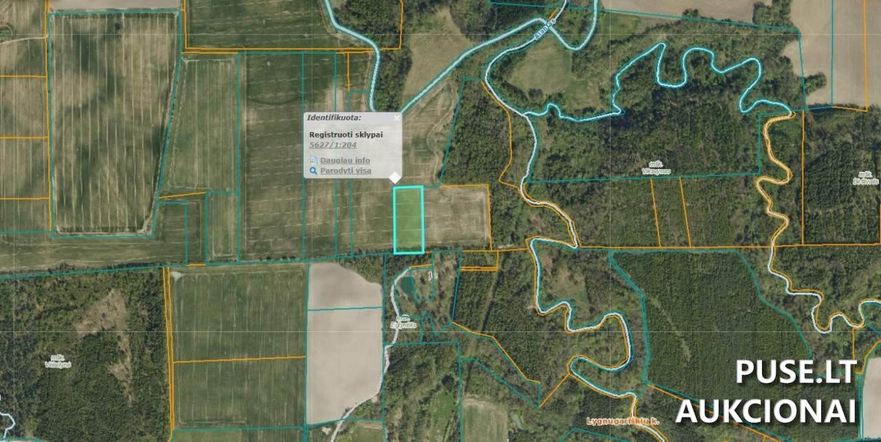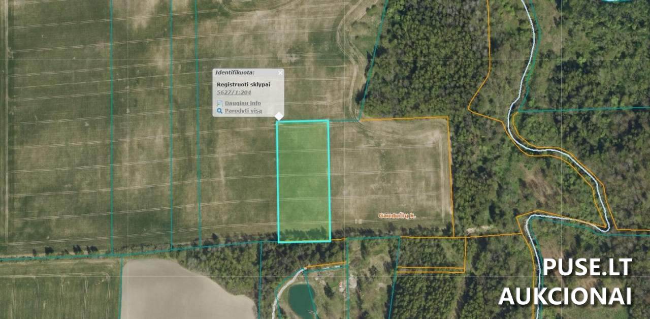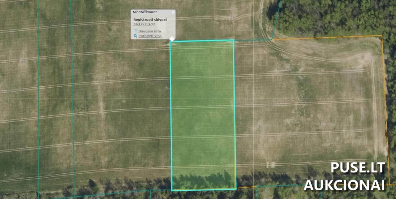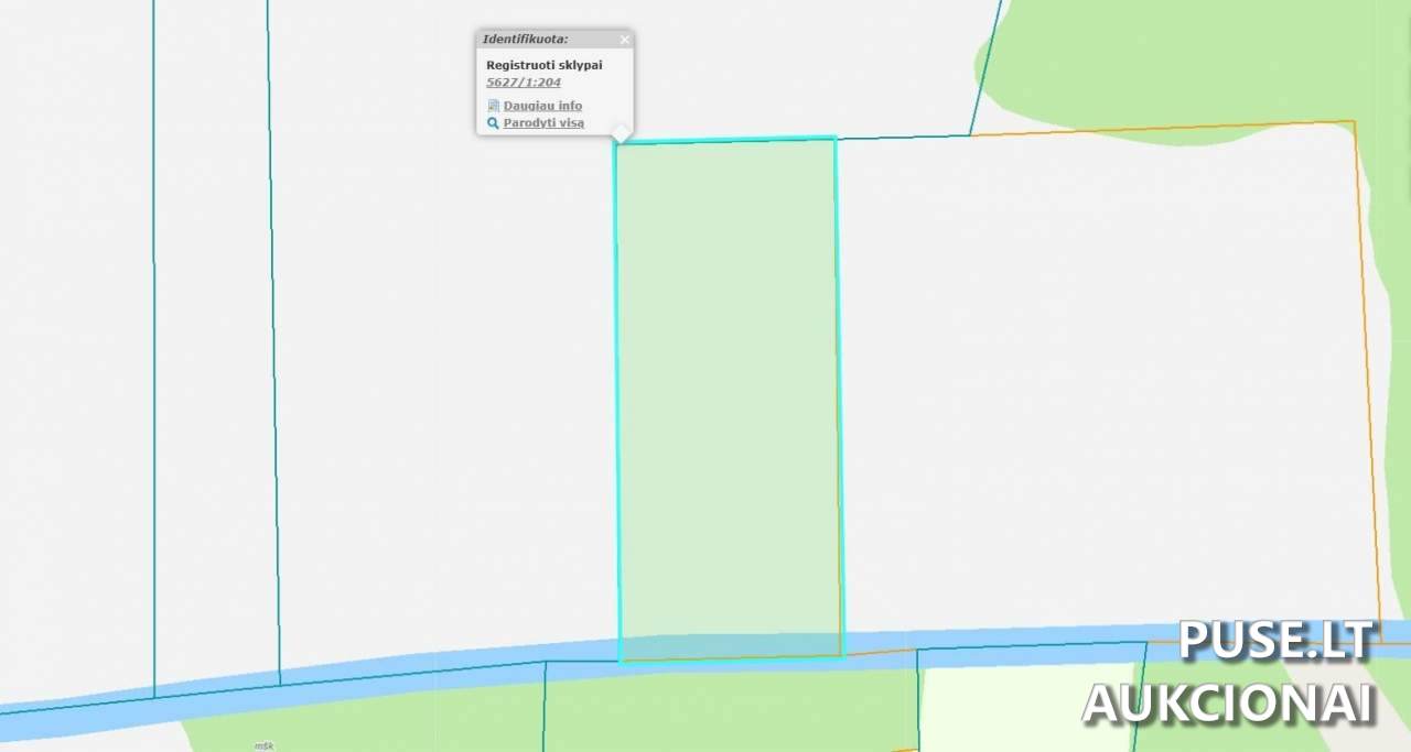 Išvaržoma 1/2 dalis žemės sklypo, pagrindinė naudojimo paskirtis – žemės ūkio. Visas žemės sklypo plotas 0,9300 ha; žemės ūkio naudmenų plotas 0,9000 ha, iš jo ariamos žemės plotas 0,9000 ha; vandens telkinių plotas 0,0300 ha; nusausintos žemės plotas 0,9000 ha. Žemės ūkio naudmenų našumo balas 37.0. Parduodama dalis: 1/2. Dokumente nurodytas kadastrinis numeris 5627/0001:204 ir unikalaus numeris 4400-0816-1491. Turto areštas riboja perleidimą pagal galiojančius apribojimus. Aukcionas vyksta antstolių varžytynėse; pradinis kainos pasiūlymas 1198 EUR. Organizuoja Antstolės B.Tamkevičienės kontora (Pievų Tako g. 8, LT-92235 Klaipėda).