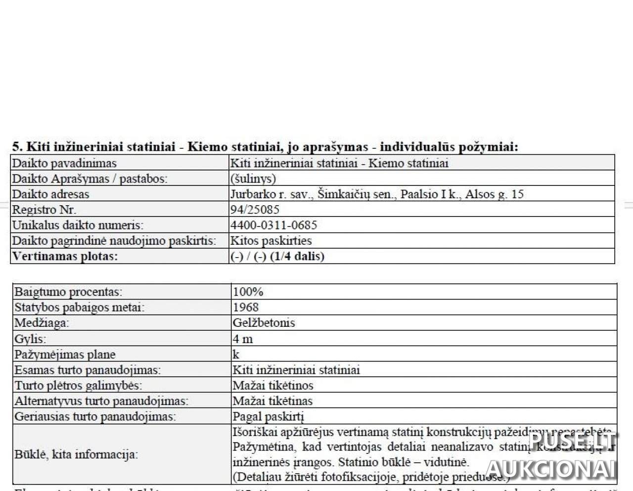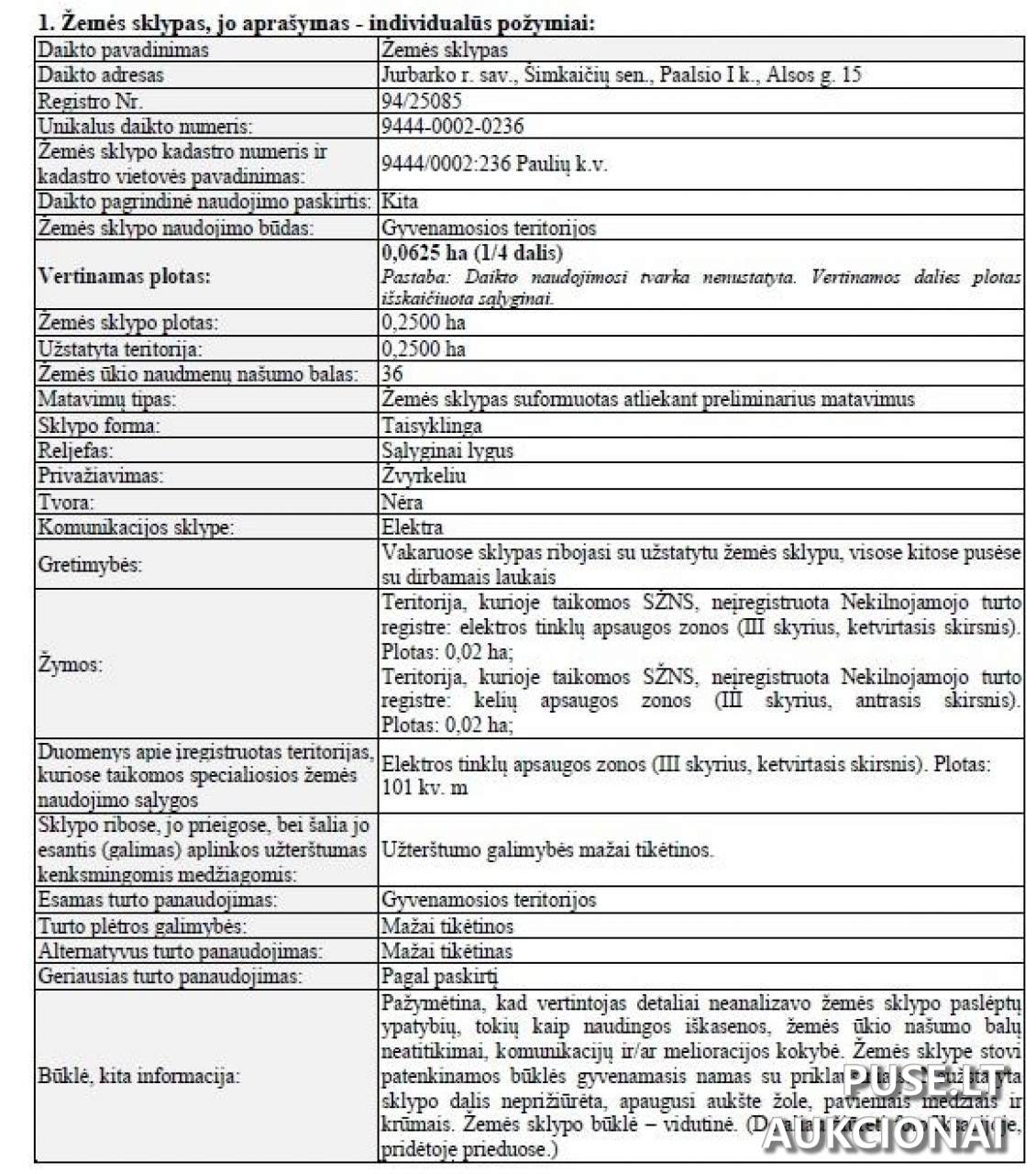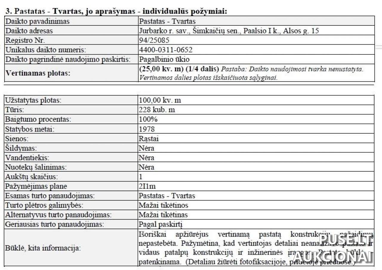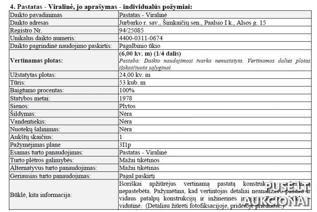 Adresas: Jurbarko r. sav., Paalsio I k., Alsos g. 15. Kadastrinis nr.: 9444/0002:236. Unikalus nr.: 9444-0002-0236.