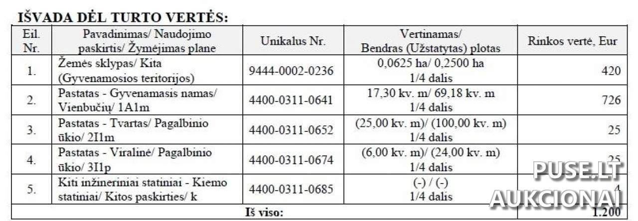 Parduodama 1/4 dalis sklypo. Turto areštas nurodytas kaip apribojimas.