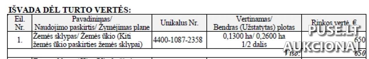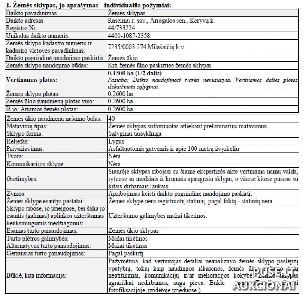 Parduodamas žemės sklypas Keryvų k., Raseinių r. sav., parduodama 1/2 dalis. Kadastrinis nr. 7235/0003:274, unik. nr. 4400-1087-2358. Pradinė kaina 4 890 EUR. Aukcionas vyksta nuo 2025-10-27 09:11:38 iki 2025-11-26 09:11:59. Objekto būklės ir detalesnis aprašymas pateiktas pridėtose nuotraukose. Sklypas yra areštuotas (turto areštas); tai gali turėti įtakos įsigijimo sąlygoms. Varžytynėse gali dalyvauti tik teisės aktuose nustatytus reikalavimus atitinkantys asmenys arba turintys įsigijimo leidimus; varžytynių laimėtojas privalės pateikti antstoliui dokumentus, patvirtinančius teisę įgyti turtą pagal Sprendimų vykdymo instrukcijos 86–88 punktus. Išsamesnės pirkimo ir mokėjimo sąlygos nurodytos aukciono dokumentuose.