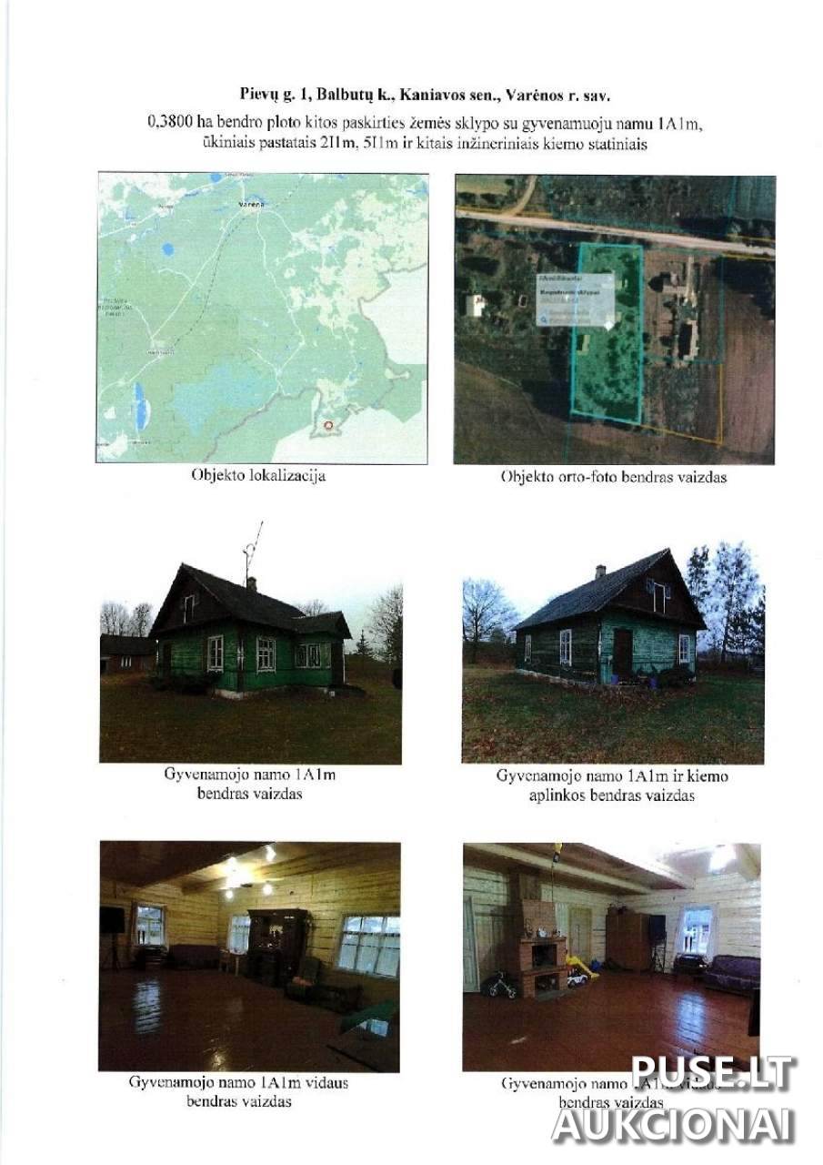 Parduodamas žemės sklypas Varėnos r. sav., Kaniavų sen., Balbutų k., Pievų g. 1. Sklypo plotas 0,38 ha, paskirtis: kitos paskirties (naudojimo pobūdis – mažaaukščių gyvenamųjų namų statybos). Sklypas netaisyklingo stačiakampio formos, beveik lygus reljefas, užsodintas vaismedžiais ir vaiskrūmiais, auga medžiai, neaptvertas. Sklypas suformuotas atlikus preliminarius matavimus. Šiaurinėje sklypo dalyje, arčiau privažiavimo kelio, stovi gyvenamasis namas; pietinėje dalyje yra ūkiniai pastatai. Parduodama dalis: 1/1. Apribojimai: disponavimo teisės apribojimas, turto areštas.