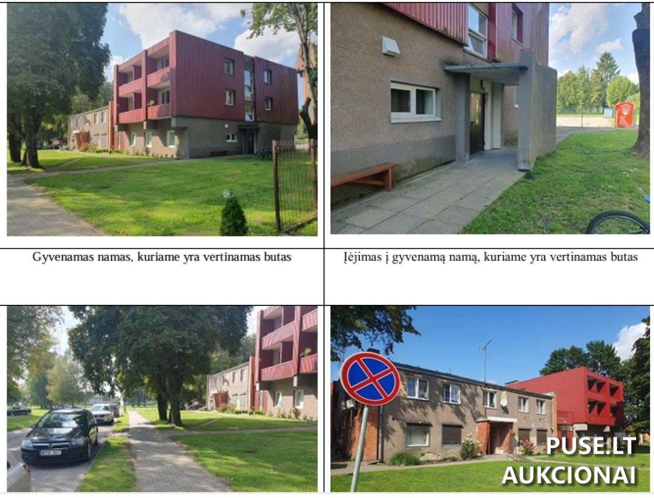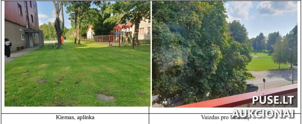 Parduodamas 1 kambario butas Šilutės r., Juknaičių kaime, Beržų g. 1 (unik. nr. 4400-2961-8106:2817). Butas yra 3-iame aukšte 3 aukštų plytiniame name (statybos metai nurodyti 1903, renovuota 1968), bendras/naudingas plotas 35,73 m², gyvenamasis plotas 24,62 m². Butas pilnai įrengtas, vidutinės/geros apdailos lygio, turi balkoną. Patalpų paskirtis – gyvenamosios (butų). Šildymas: vietinis centrinis (centralizuotas). Inžinerinės sistemos: elektros įvadas ir instaliacija, komunalinis vandentiekis, komunalinės nuotekos; dujų nėra. Pastato laiptinė tvarkinga, įėjimas iš kiemo, rakinama su kodine spyna. Aplink vyrauja daugiabučiai gyvenamieji pastatai, netoliese Juknaičių pagrindinė mokykla ir parduotuvės; yra automobilių stovėjimo aikštelė, artimiausia viešojo transporto stotelė apie 200 m. Pradinė aukciono kaina: 13 440 EUR. Aukcionas vyksta nuo 2025-10-29 09:04:35 iki 2025-11-28 09:04:59. Parduodama nuosavybės dalis: 1/1. Įrašytas turto areštas ir disponavimo teisės apribojimas.