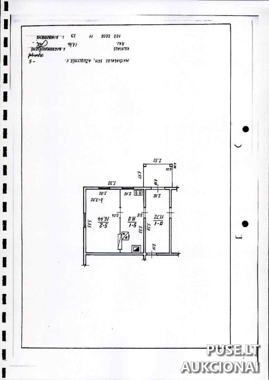 Butas su rūsiu (unikalus kadastras 4194-0365-1013:0005, 1A/1m) Vilniaus r., Ąžuolynės k. 7. Gyvenamoji paskirtis (butų), bendras plotas 27,44 kv. m, kambarių skaičius 1, aukštas 1. Pastatas rąstų, statybos metai 1940. Nėra centralizuoto vandentiekio, šildymas krosninis. Nekilnojamasis turtas parduodamas esamos fizinės ir funkcinės būklės pagal kadastro duomenis; pardavėjas neįsipareigoja iškraustyti patalpose esančių daiktų. Pardavimo sąlygos apima aukciono pradžios kainą 10 210 EUR, garantinį mokestį 1 021 EUR ir registracijos mokestį 100 EUR. Aukciono vykdymas ir atsiskaitymo terminai nurodyti organizatoriaus sąlygose; pirkimo-pardavimo sutartis turi būti sudaryta pagal nustatytus terminus, o visa kaina sumokėta per 10 kalendorinių dienų nuo sutarties pasirašymo.