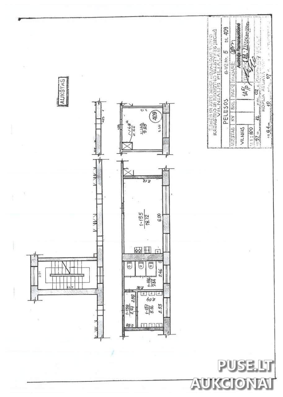 Parduodamas 10,29 kv. m. kambarys Vilniaus miesto savivaldybėje, Pelesos gatvėje 5-409. Šis nekilnojamasis turtas, turintis pradinę kainą 18700 EUR, yra vieno vieneto (1/1 dalis) nuosavybės teisėmis. Patalpos yra penkių aukštų mūrinio pastato ketvirtame aukšte, bendras plotas apima 10,29 kv. m. parduodamo ploto ir 1,71 kv. m. bendrojo naudojimo patalpų.