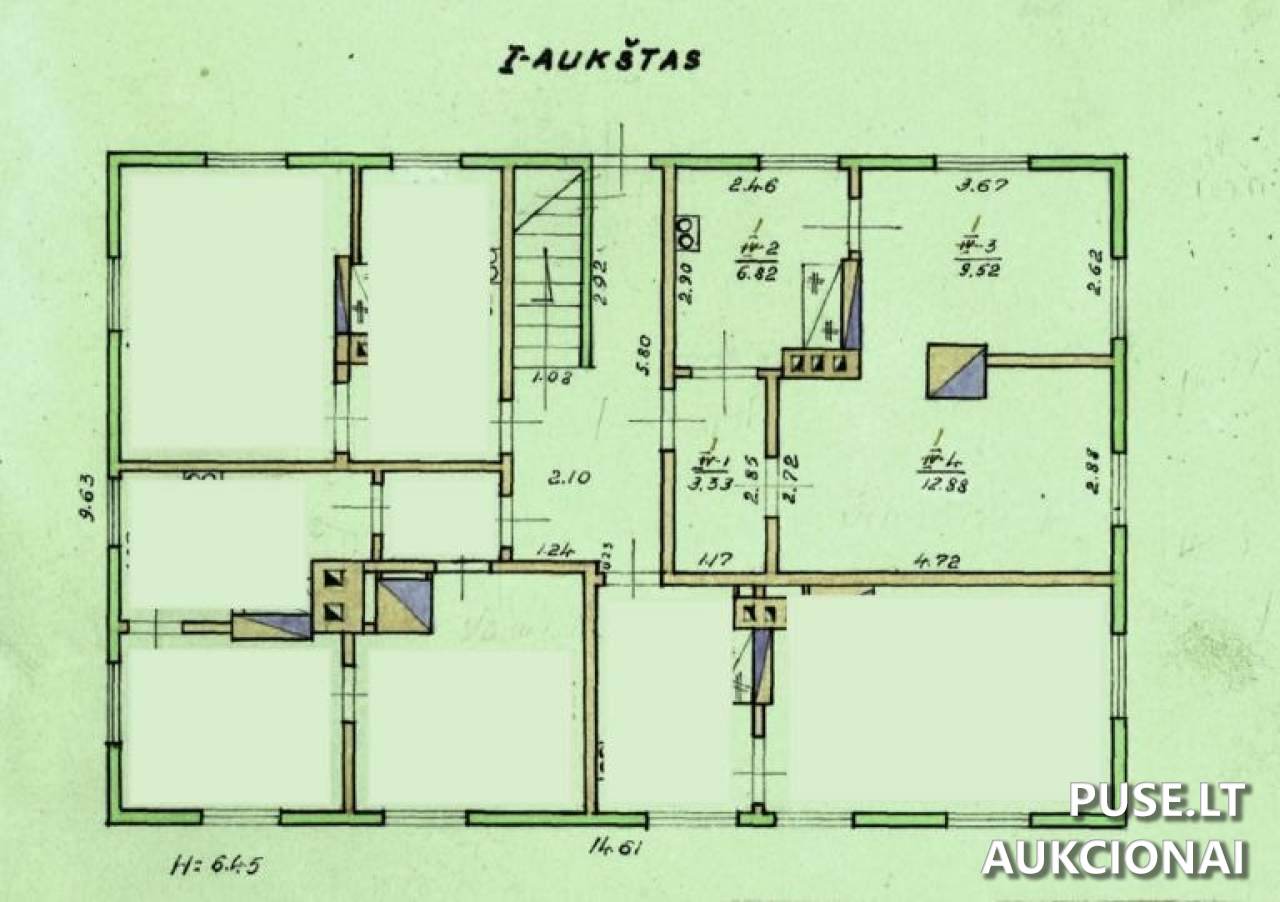 Šio buto, esančio Pasvalyje, Nepriklausomybės g. 63-1, pradinė kaina aukcione yra 5440 EUR.