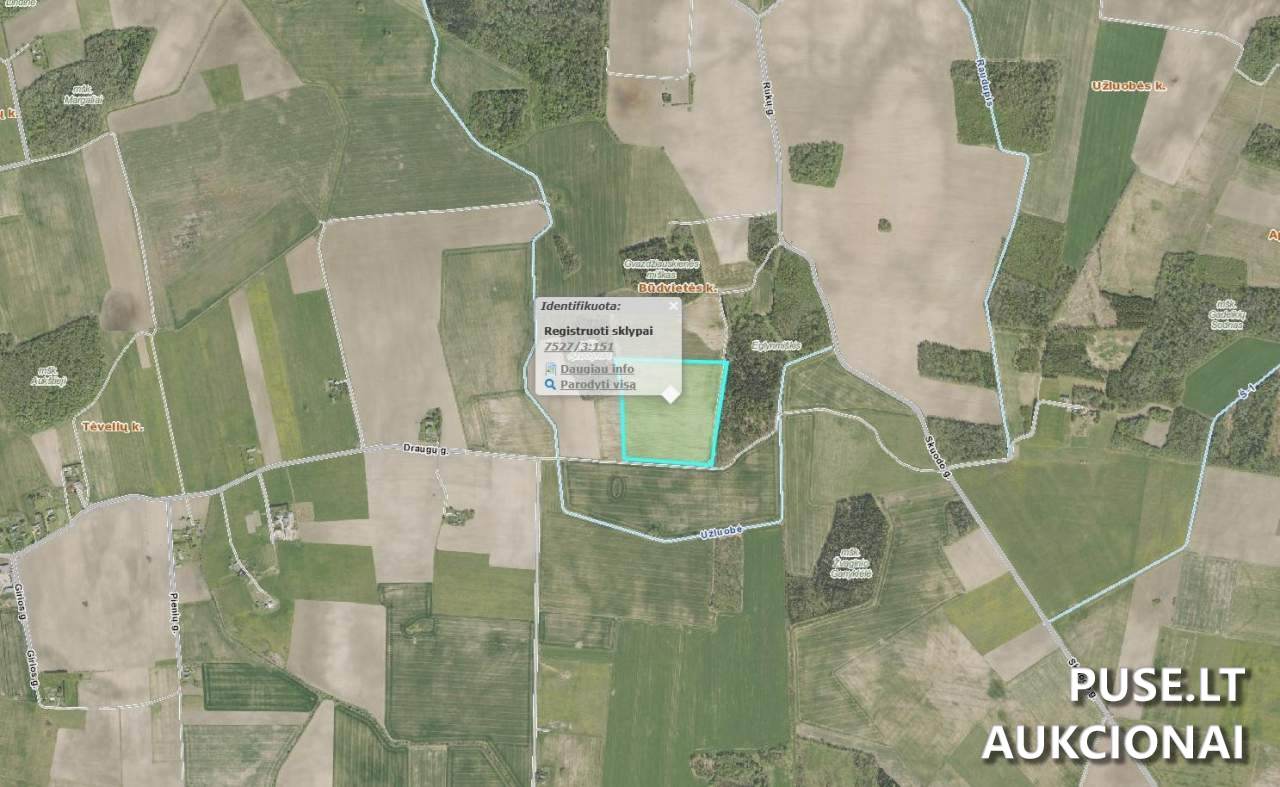 Žemės ūkio paskirties sklypas Skuodo rajone, Būdvietės kaime, 9.25 ha, pradinė kaina 38850 EUR