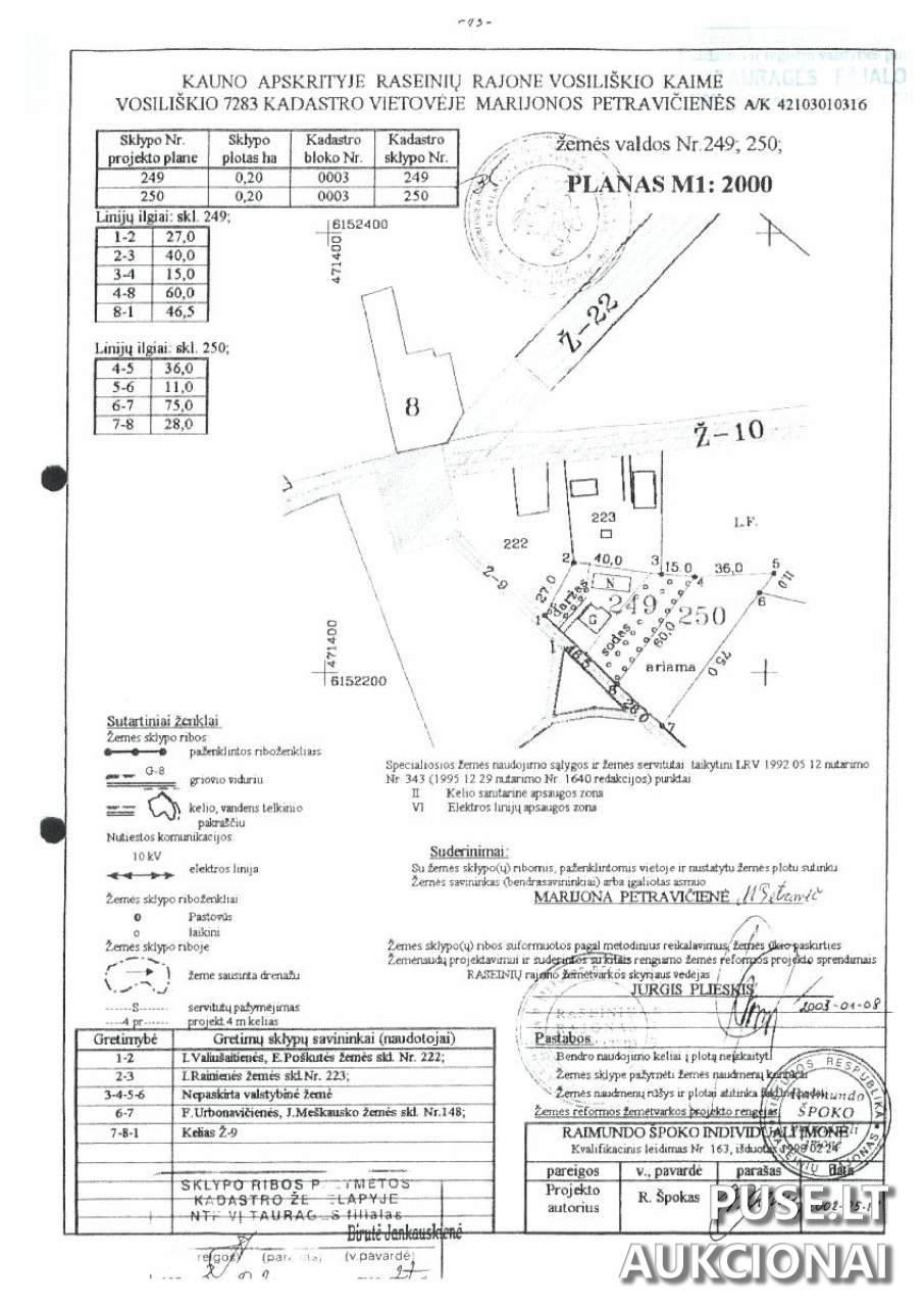 Parduodama 2/3 dalis žemės ūkio paskirties žemės sklypo Raseinių rajono savivaldybėje, Vosiliškio kaime, Pagojukų seniūnijoje. Pradinė šio turto kaina aukcione yra 245 EUR. Visas sklypo plotas yra 0.2000 ha, kuriame yra 0.2000 ha žemės ūkio naudmenų, įskaitant 0.2000 ha ariamos žemės. Žemės ūkio naudmenų našumo balas yra 25.0.