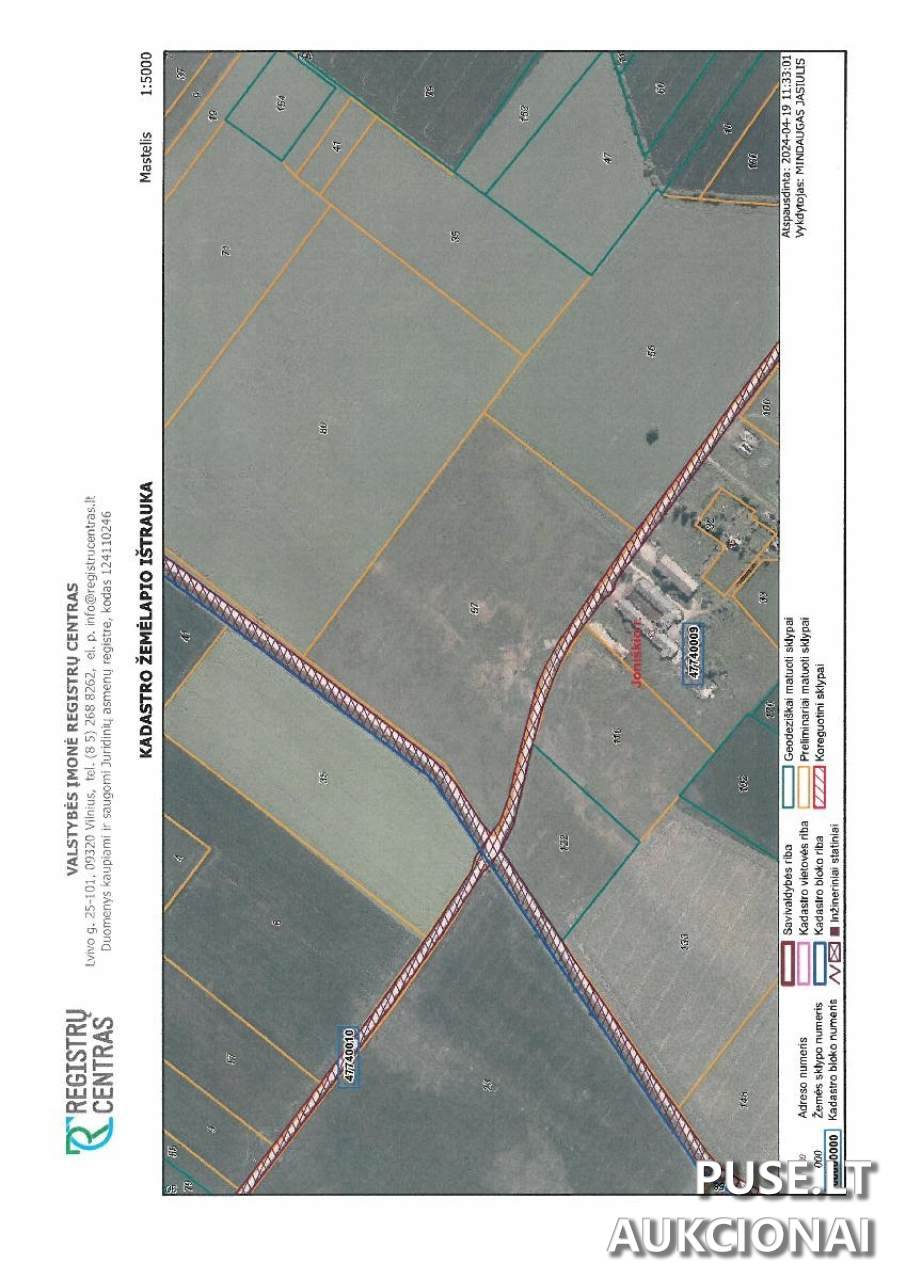 Žemės ūkio paskirties 9.9500 ha sklypo pradinė kaina yra 49140 EUR.