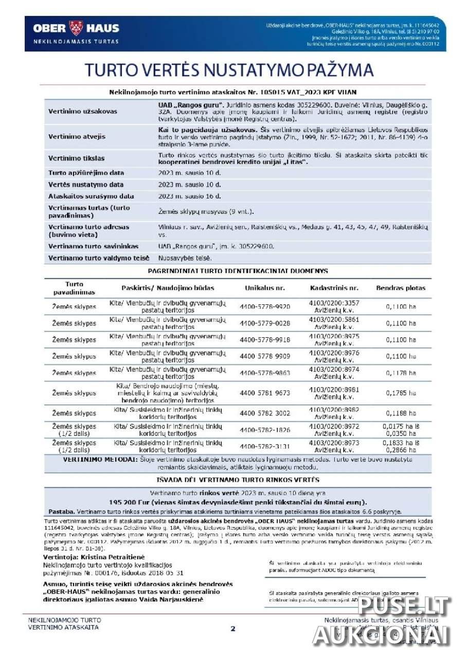 Turtas yra Nacionalinės teismų vykdomų procedūrų areštuotas. Objekto vertinimas, kuris buvo naudojamas nustatant pradinę kainą, atliktas 2023-01-10 pagal UAB "OBER-HAUS" Nekilnojamojo turto vertinimus Nr. 105012 VAT_2023 KPE VHAN ir Nr. 105015 VAT_2023 KPE VHAN.