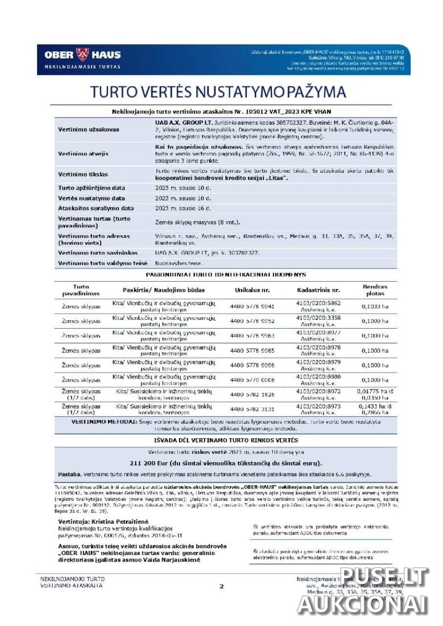 Žemės sklypų komplekso pradinė kaina aukcione yra 325120 EUR.