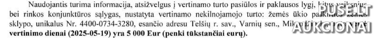 Žemės sklypo pradinė kaina Telšių r. sav., Miksodžio k., yra 4000 EUR.