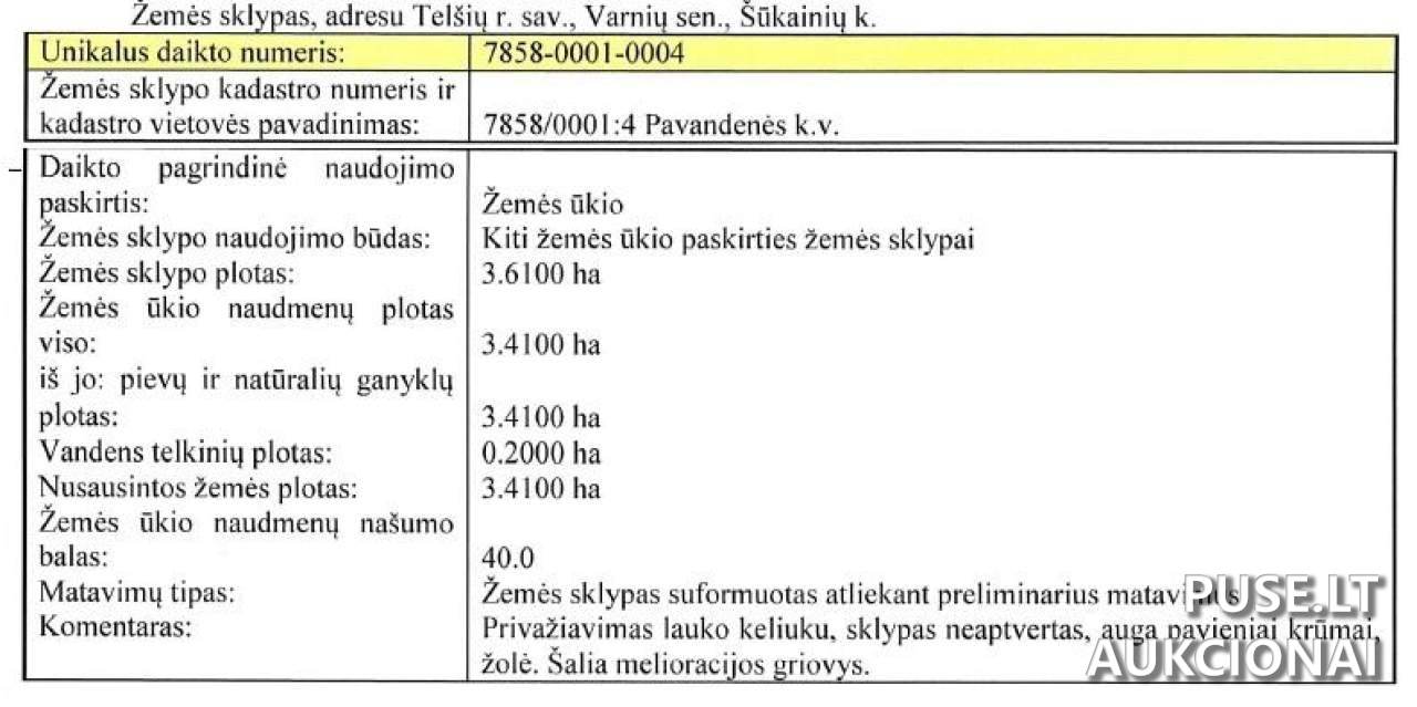 Žemės sklypo kadastrinis numeris yra 7858/0001:4, o unikalus numeris - 7858-0001-0004.