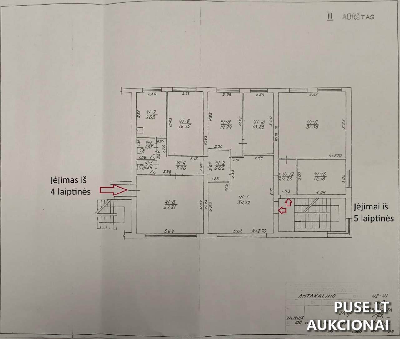 Kada baigiasi komercinių patalpų aukcionas Vilniuje, Antakalnio g. 42?