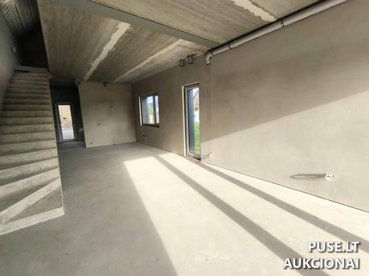 Buto statybos baigtumo lygis yra 85 proc., statybos metai svyruoja tarp 2021 ir 2022 m. Butas išplanuotas per du aukštus, su įėjimu tiesiai iš lauko, ir neįrengtas – grindys betonuotos, sienos tinkuotos. Langai yra plastikiniai su stiklo paketais, tačiau vidaus durų nėra. Namo sienos statytos iš blokelių, dujų pajungimo nėra. Šildymo sistema bute išvedžiota, bet katilas nepajungtas, numatyta individuali centrinio šildymo sistema. Komunalinio vandentiekio ir nuotekų šalinimo tinklai išvesti, tačiau pajungimo nėra.