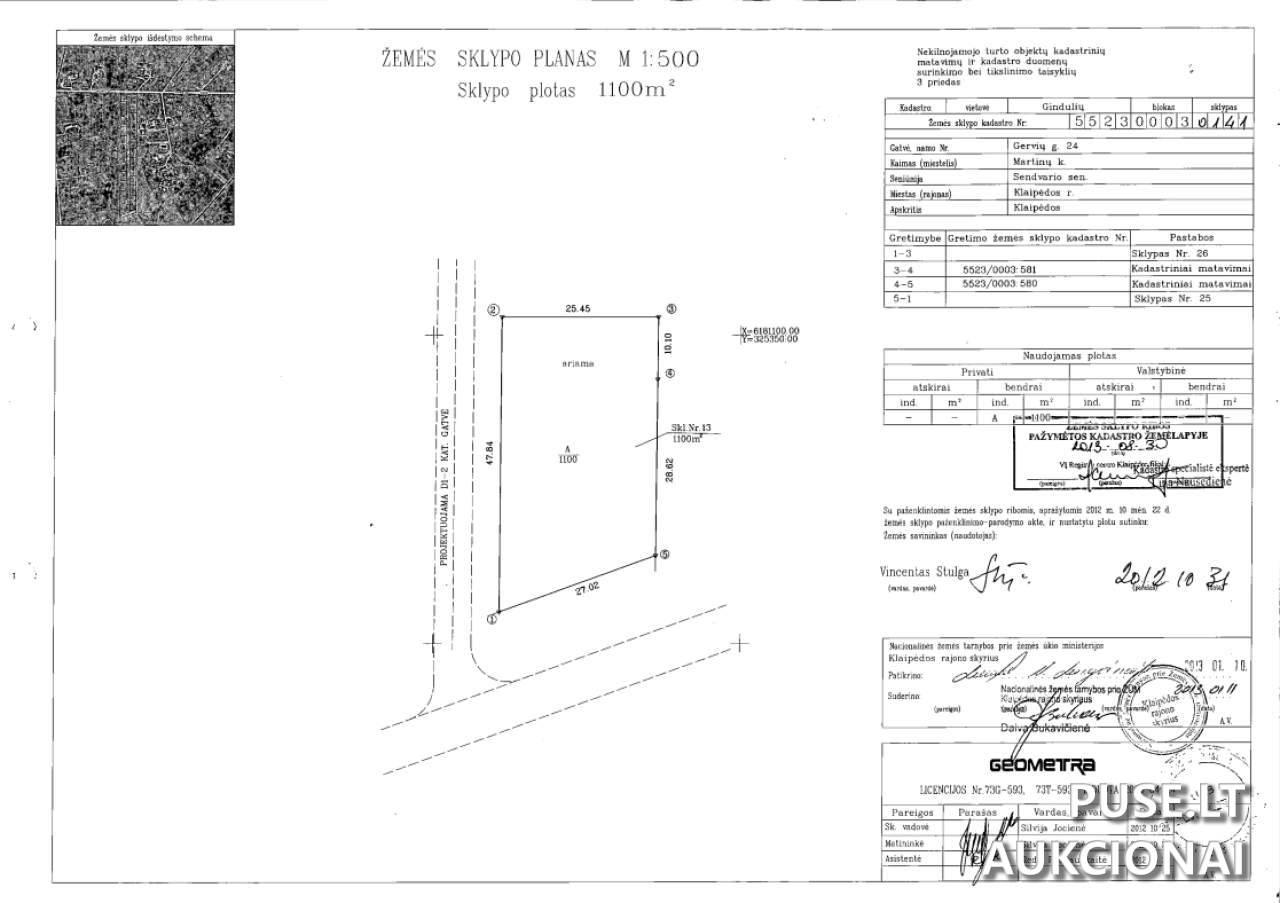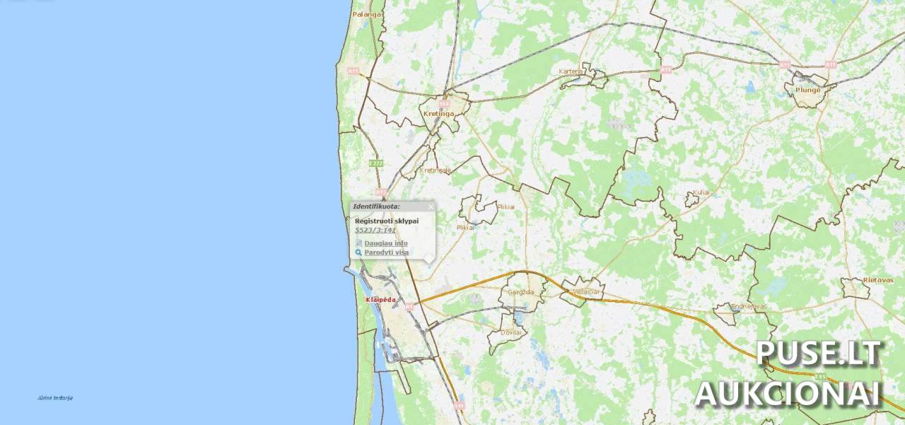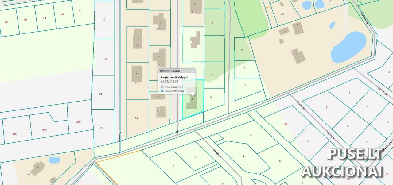 Parduodamas 0.1100 hektaro žemės sklypas su nebaigtu statyti dviejų butų pastatu Klaipėdos rajone, Martinų kaimo Gervių gatvėje, kurio pradinė kaina aukcione yra 151040 EUR. Šis nekilnojamojo turto objektas, kurio kadastro numeris 5523/0003:141 (unikalus Nr. 4400-2739-9097), yra suformuotas atlikus kadastrinius matavimus. Sklypo pagrindinė naudojimo paskirtis yra vienbučių ir dvibučių gyvenamųjų pastatų teritorijos, o žemės ūkio naudmenų našumo balas siekia 46.5.