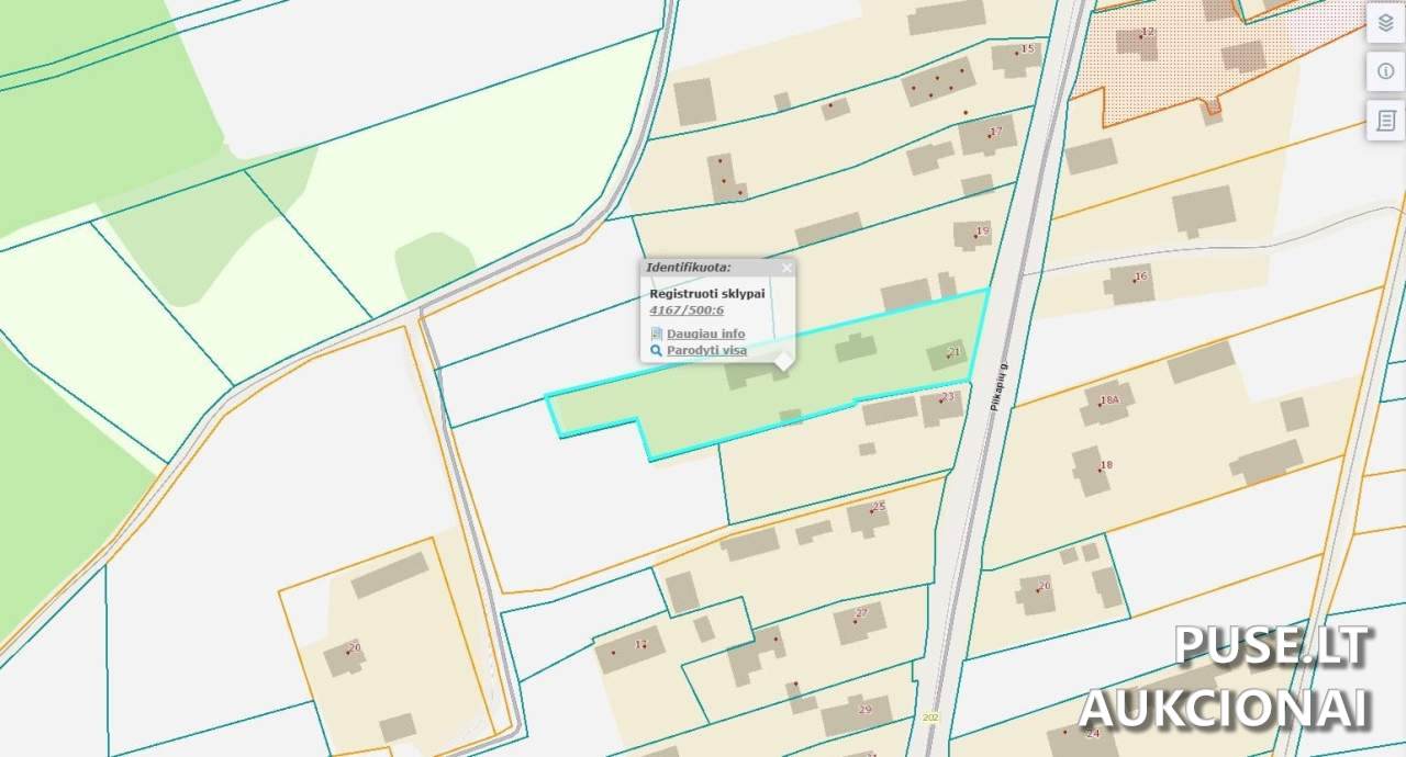 Kadaastrinis numeris – 4167/0500:6, unikalus numeris – 4167-0500-0006. Tai yra turtas, parduodamas antstolių varžytynių proceso metu, todėl galioja tam tikri apribojimai, įskaitant disponavimo teisės apribojimą – turto areštą.