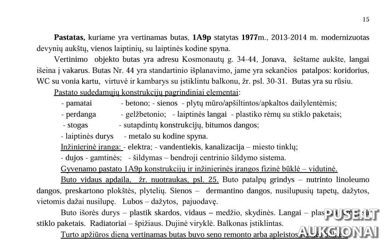 Parduodamas nekilnojamasis turtas - butas, esantis Jonavos mieste, Jonavos rajono savivaldybėje, Kosmonautų gatvėje 34. Šiuo metu vyksta antstolių vykdomosios varžytynės, o pradinė kaina nustatyta 15040 EUR. Visos 1/1 turto dalies pardavimas vyksta viešame aukcione.