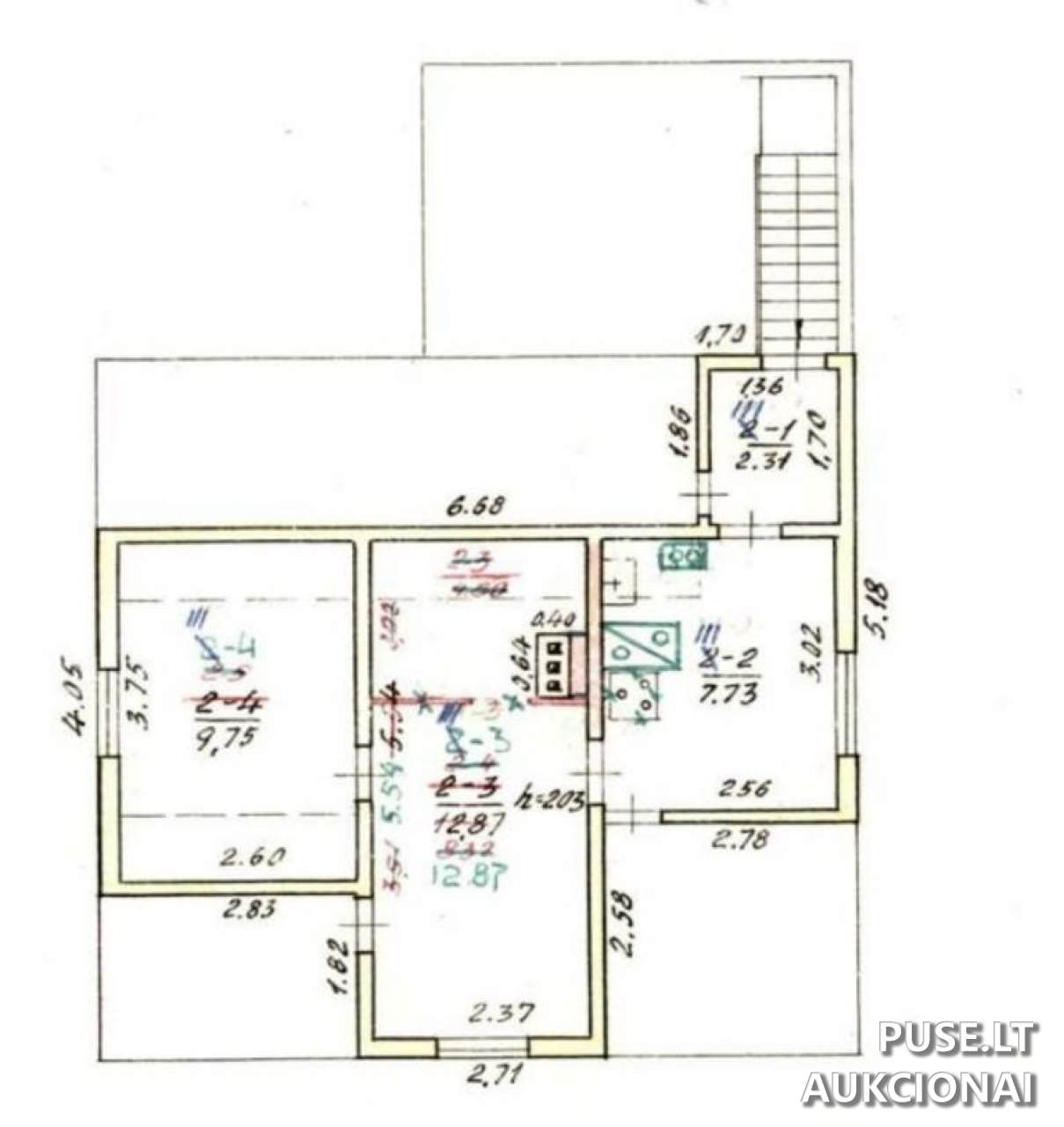 Parduodama 32/100 dalis gyvenamojo namo (100.75 kv. m) ir atitinkamos dalys kitų statinių bei žemės sklypo (0.0322 ha).