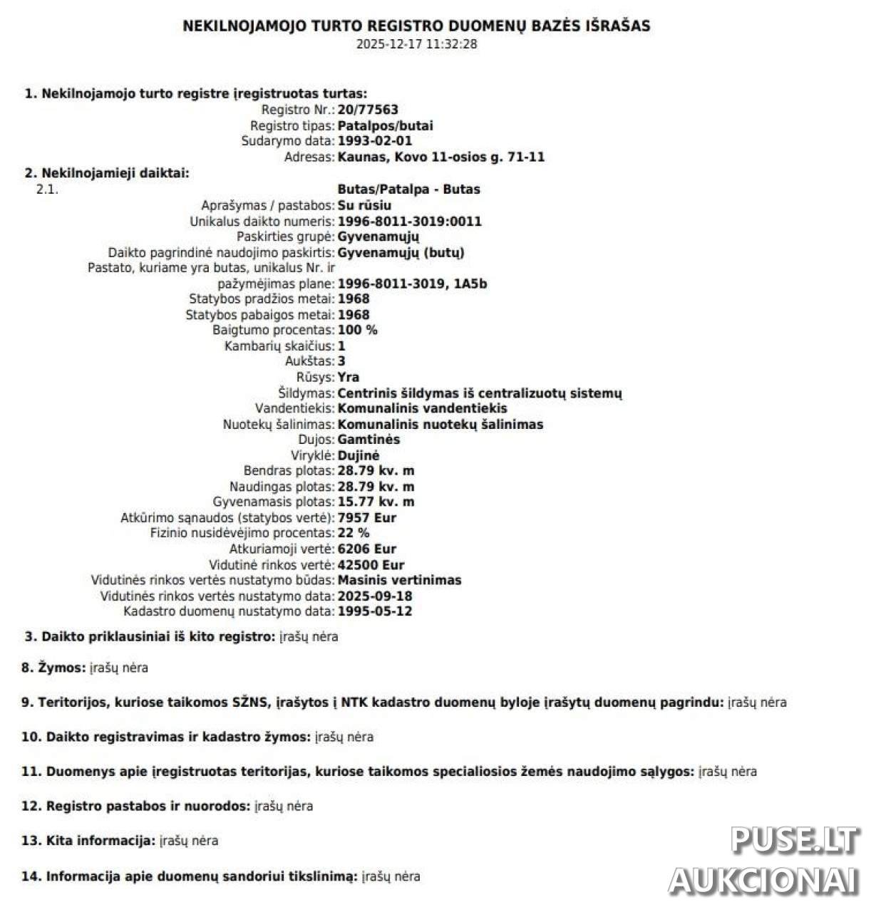 Ar butas yra pilnai priduotas, kokioje vietoje jis yra Kaune?