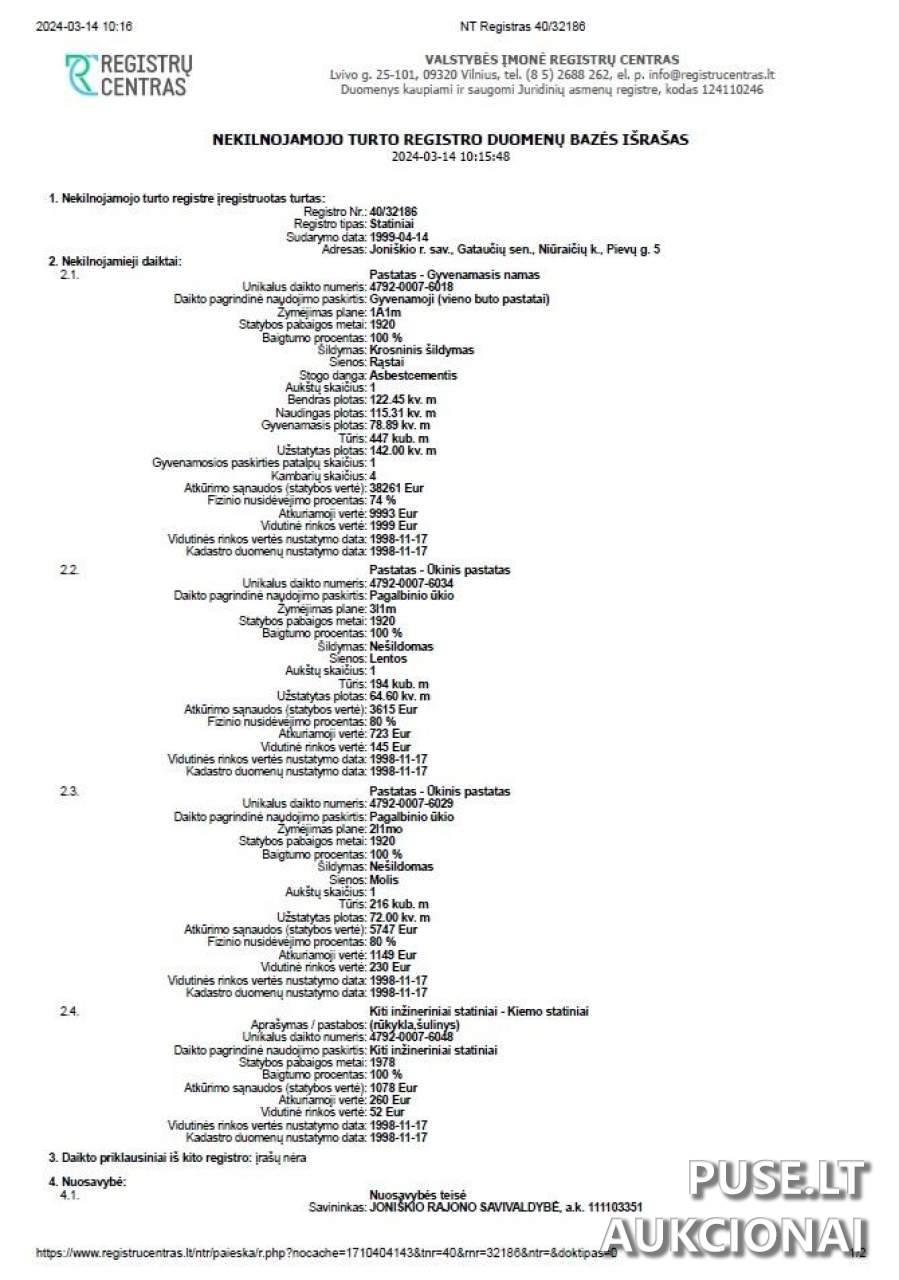 Dėl turto apžiūros laiko būtina kreiptis į Joniškio rajono savivaldybės administracijos atstovus.