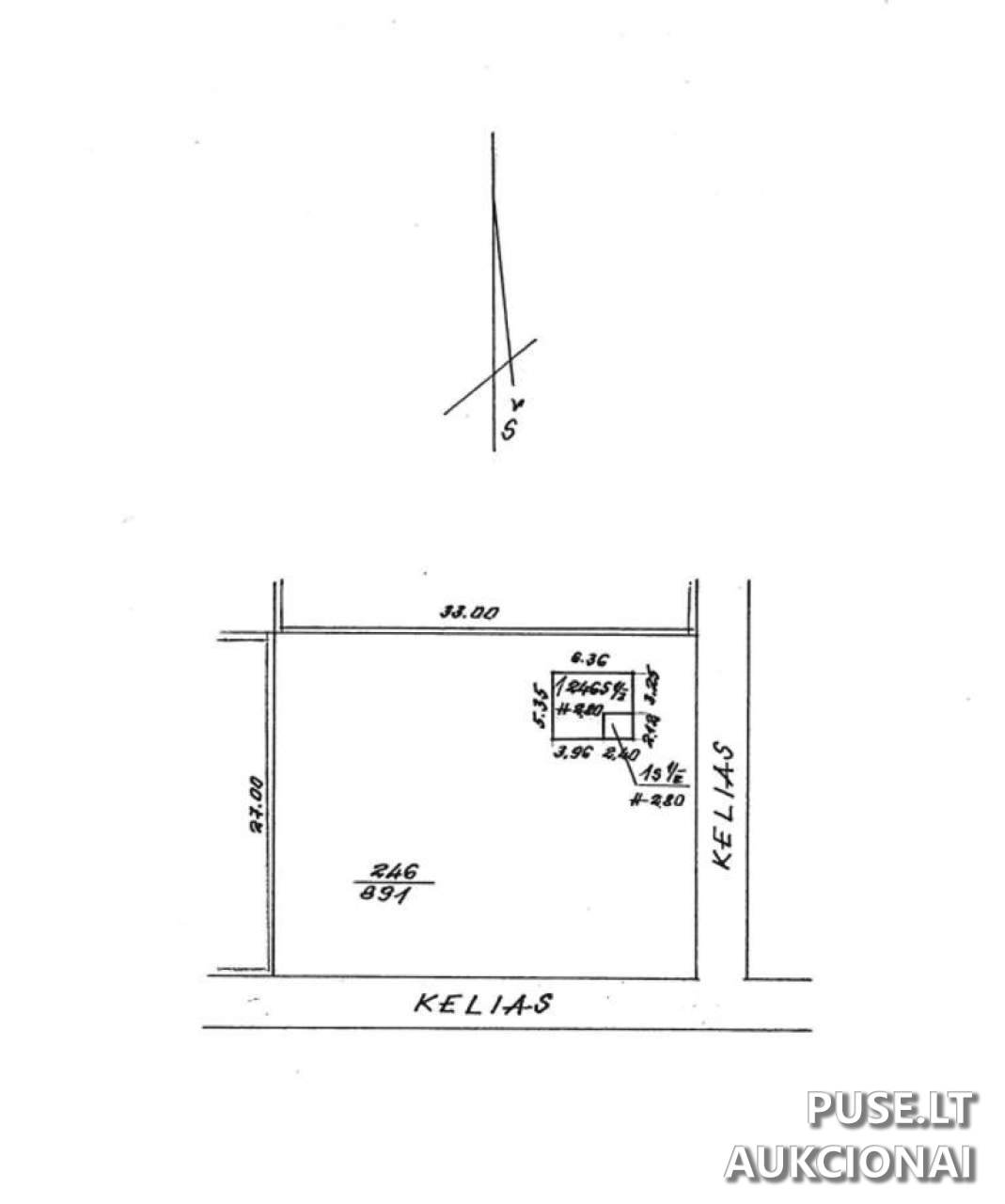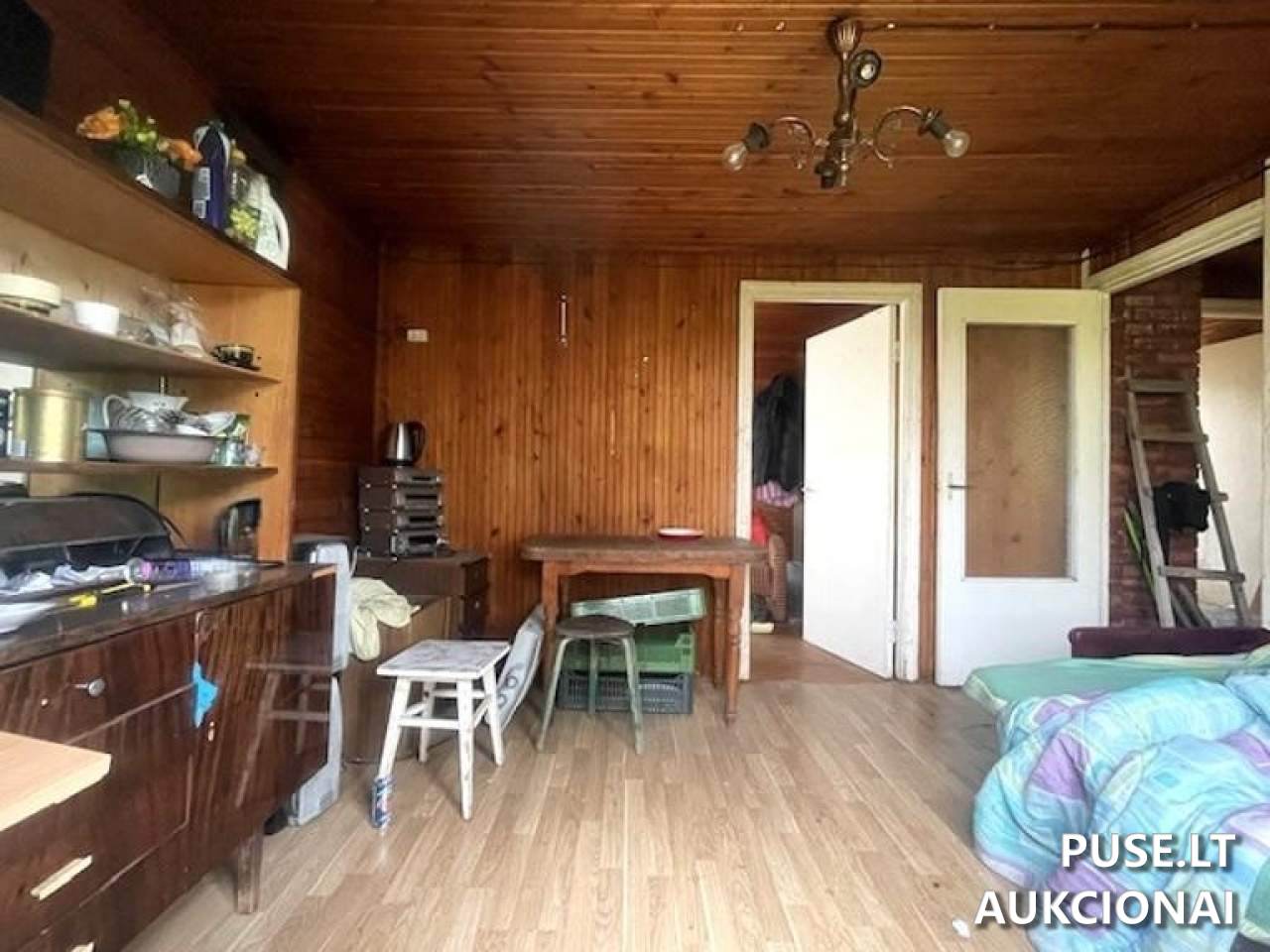 Parduodama 1/3 dalis sodo pastato (31,37 kv. m) ir 1/3 dalis žemės sklypo (0,0723 ha). Pradinė kaina aukcione yra 2298 EUR.